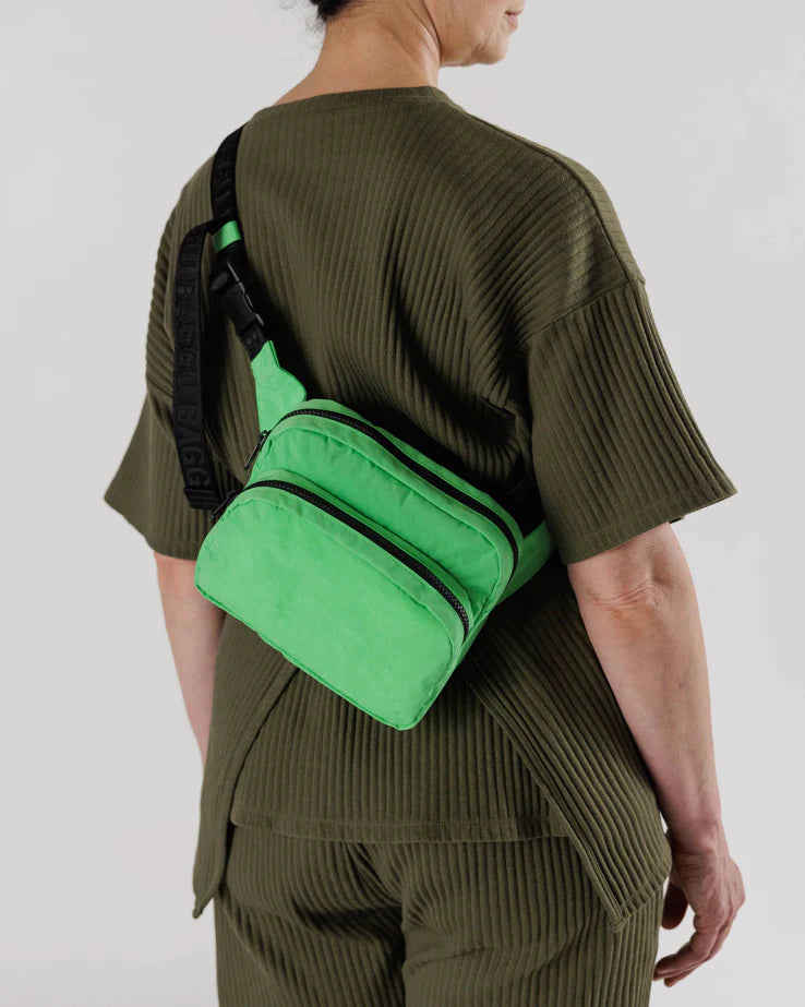 A hands-free bag for any outing. Surprisingly spacious and made from durable, heavyweight nylon for easy cleaning. Wear across your body, over your shoulder or around your waist.