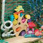 This brand new under-the-sea themed stacker is inspired by our lovely oceans and the beautiful coral reefs. We love to teach our little ones about animals and sea life, and this plastic-free toy stacker will not disappoint. Stack the sea creatures and shells on top of the coral rock, and see if you can balance them all!