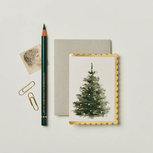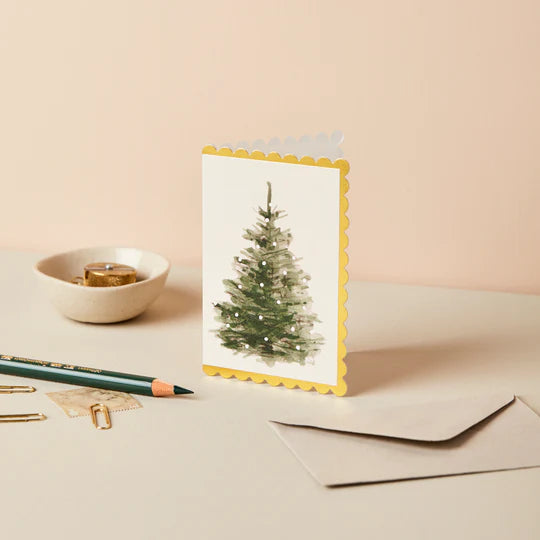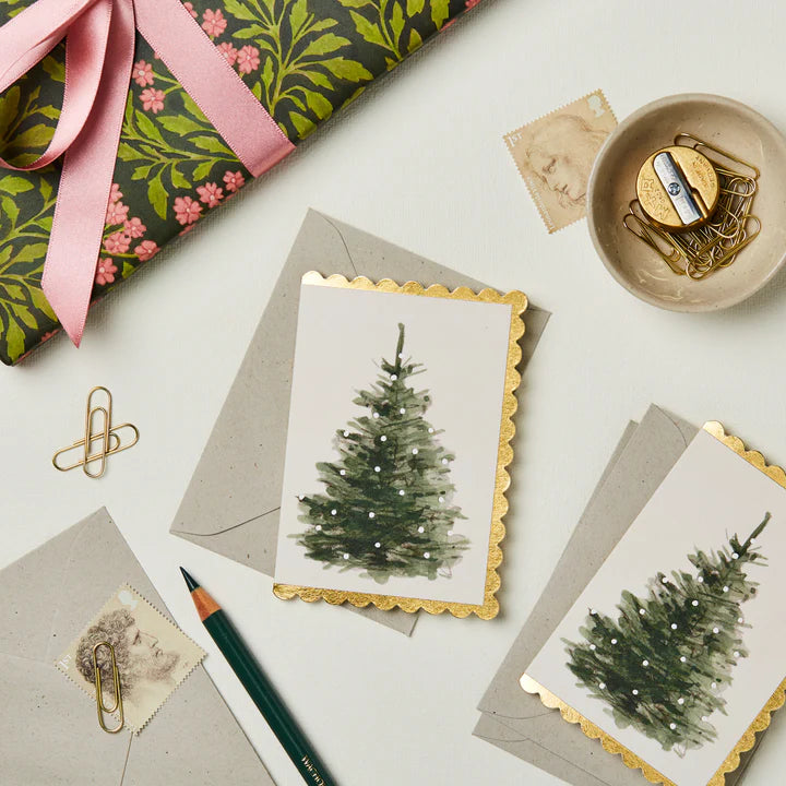Our Wanderlust Paper Co mini card series features playful illustrations with gold foil scalloped edges. Each one is paired with a pale grey C7 envelope.