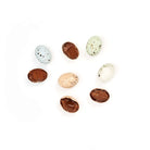 INGREDIENTS: WHITE EGGS: sugar, Ecuador cocoa mass, praline 15% (HAZELNUTS, sugar), cocoa butter, whole MILK powder, LACTOSE, concentrated butter (MILK), coating agents, (gum arabic, Carnauba wax, beeswax, shellac), starches, cocoa powder, emulsifier: SOYA lecithin, glucose syrup, colouring ingredients (spirulina, apple concentrate, and malted BARLEY extract), salt, natural vanilla flavouring, colouring: E160a. BROWN EGGS: sugar, cocoa mass, caramel 12% (sugar, water, dextrose), whole MILK powder, cocoa butter, concentrated butter (MILK), glucose syrup, coating agents (gum arabic, Carnauba wax, beeswax, shellac), starches, emulsifier: SOYA lecithin, colouring foodstuffs (apple, safflower, lemon, sweet potato & radish concentrates, BARLEY malt extract), “fleur de sel” salt, natural vanilla flavouring. Milk chocolate contains 30% cocoa min, 19% milk min. Dark chocolate contains 52% cocoa.