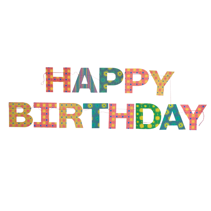 Delight your guests and celebrate with this cheerful birthday garland which be displayed over three metres, or cut in two to drape across a smaller space.