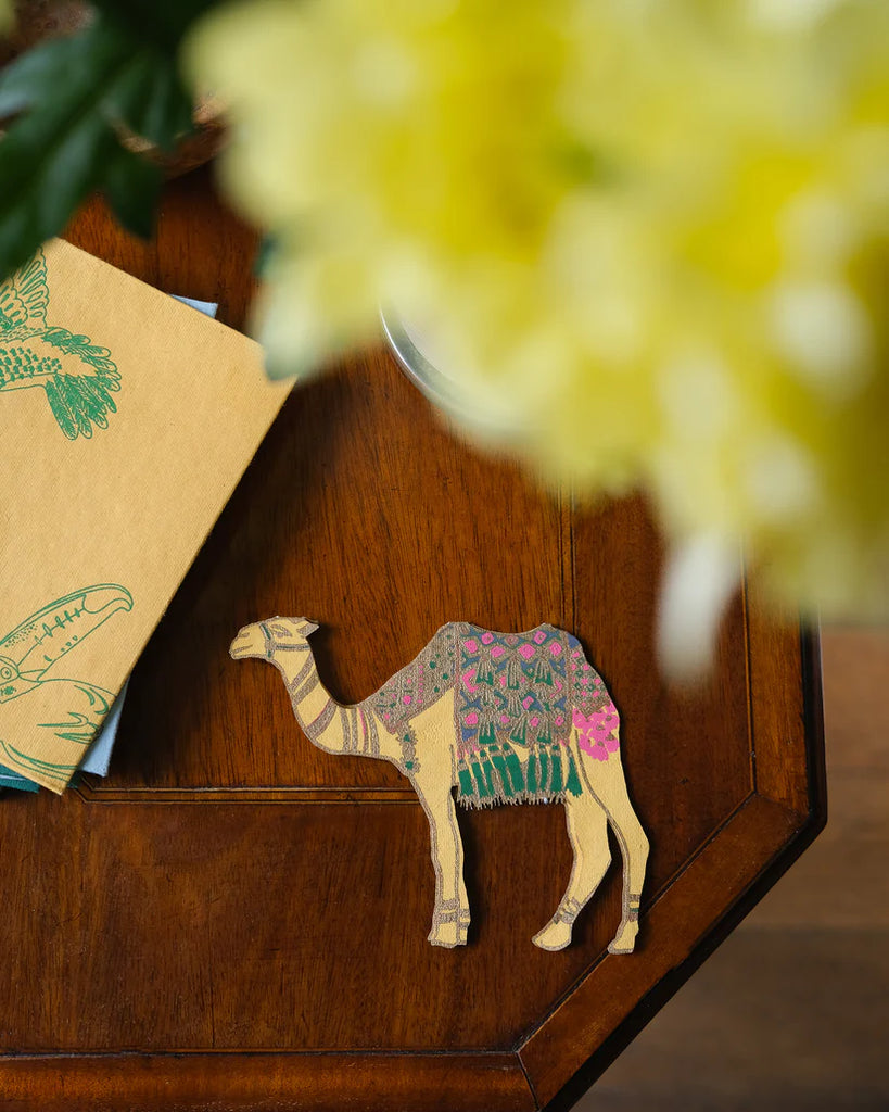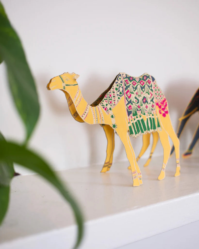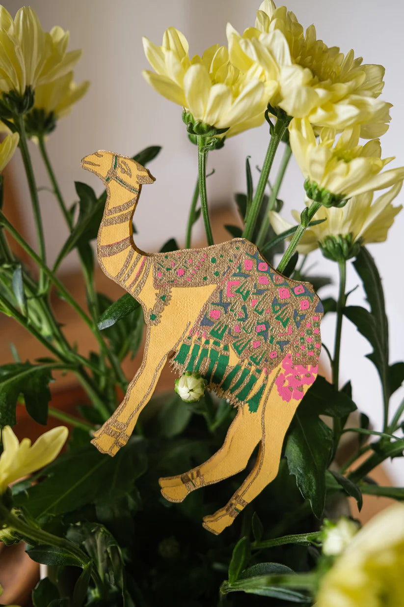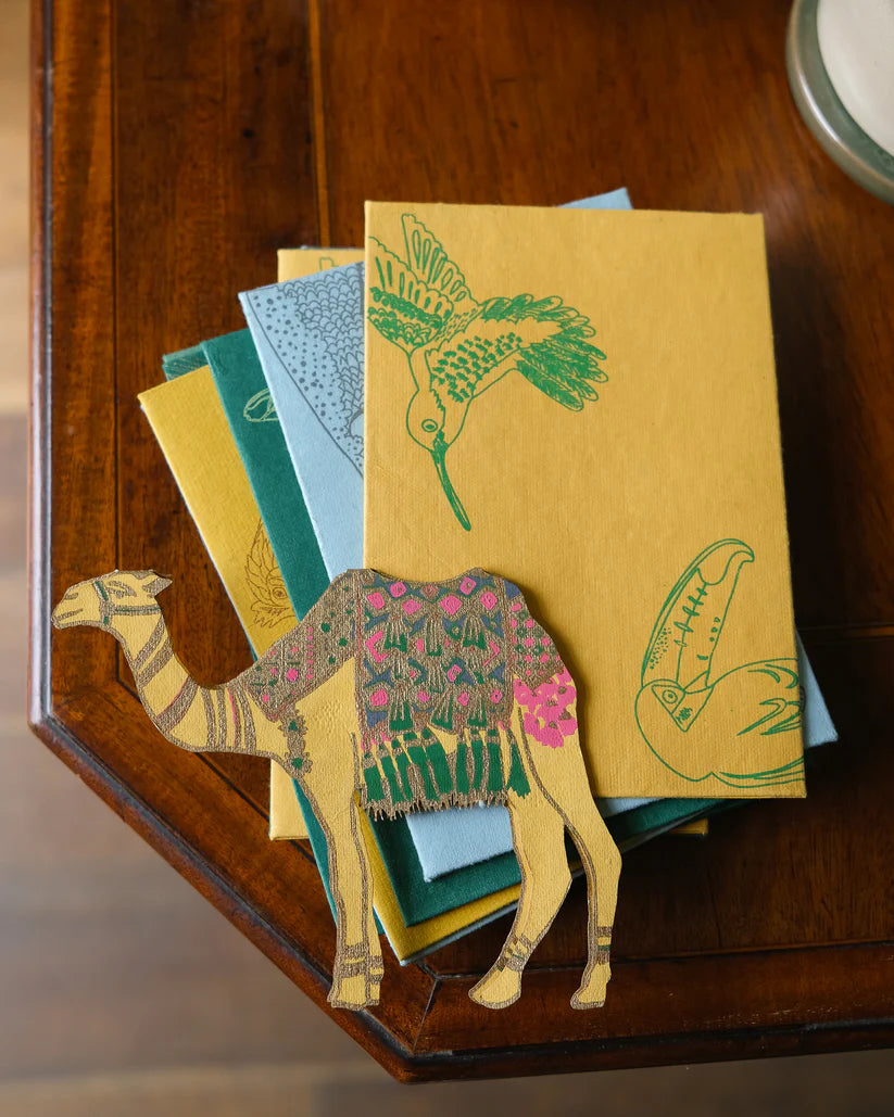 This happy camel stands up and would take pride of place on any mantelpiece! With a panel on the inside for your message, and a colourful printed envelope, this is a very special greeting card! 100% recycled paper content as is standard for all East End Press products.