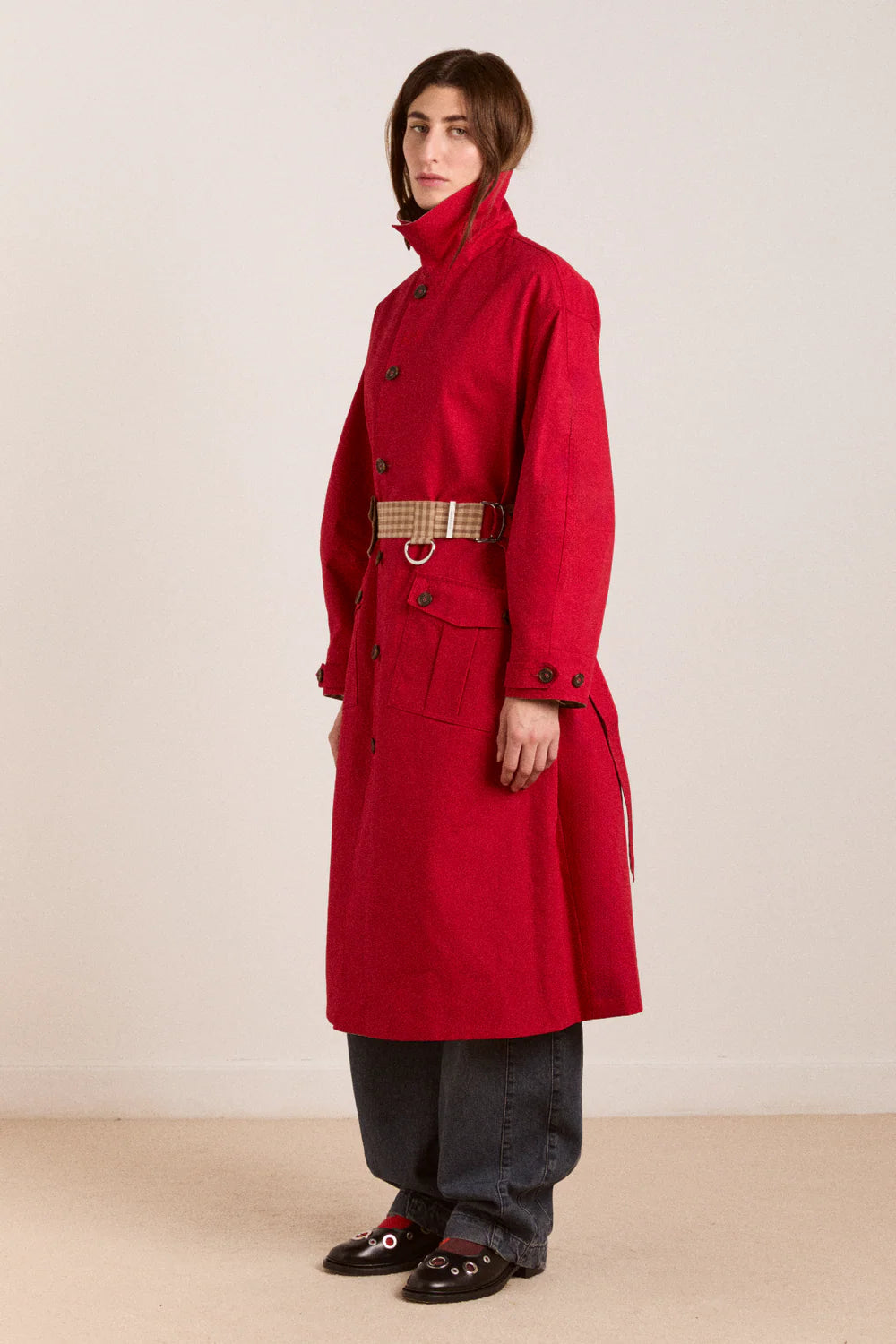Meet the trench that does the most. The Anja Honey Trench is fully reversible and shower-proof, giving you two looks in one: a tan gingham moment on one side and bold solid red on the other whilst protecting you from the elements. Crafted from 100% organic cotton, it’s designed with considered detailing throughout.
