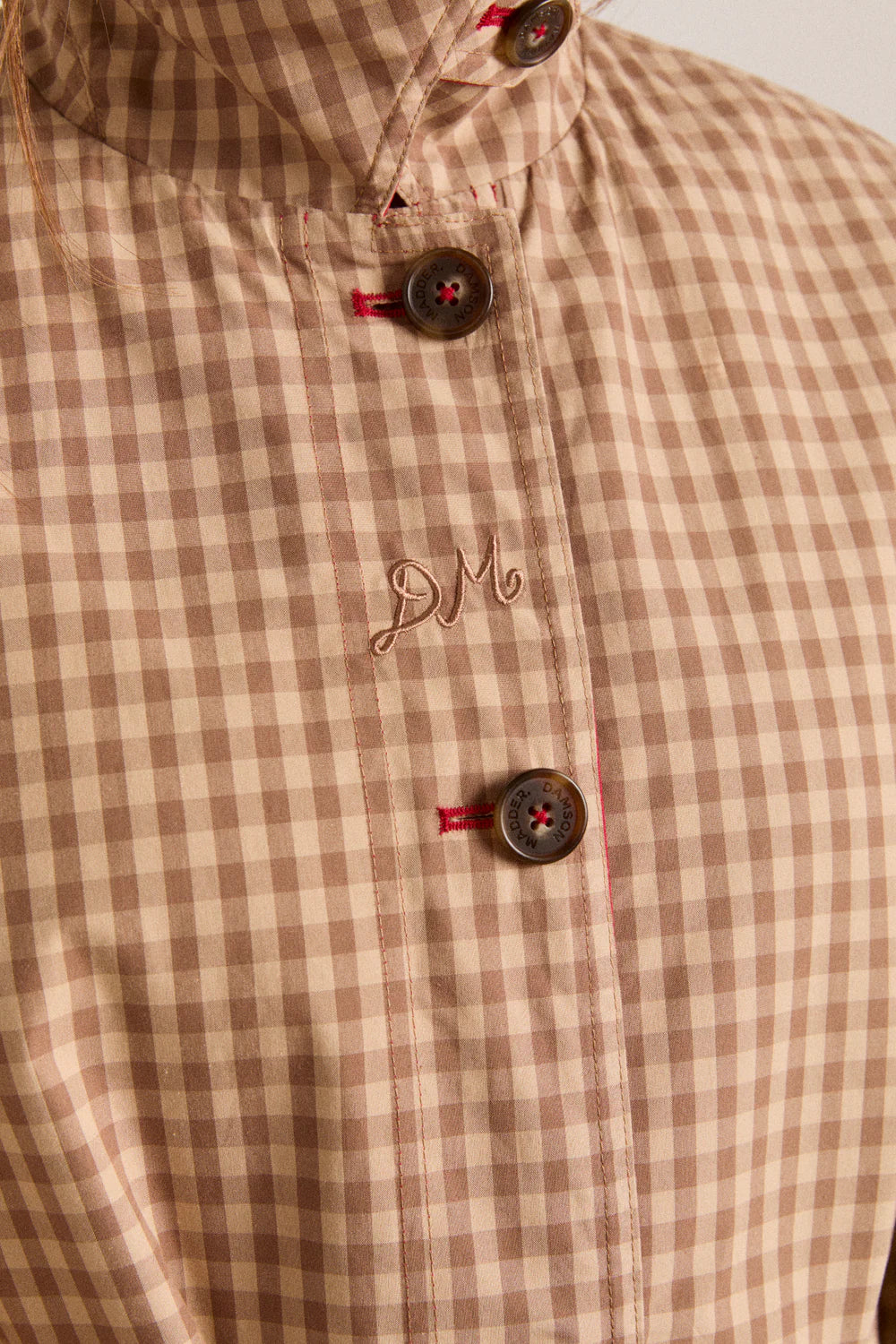 • Contrast stitch button holes on gingham side