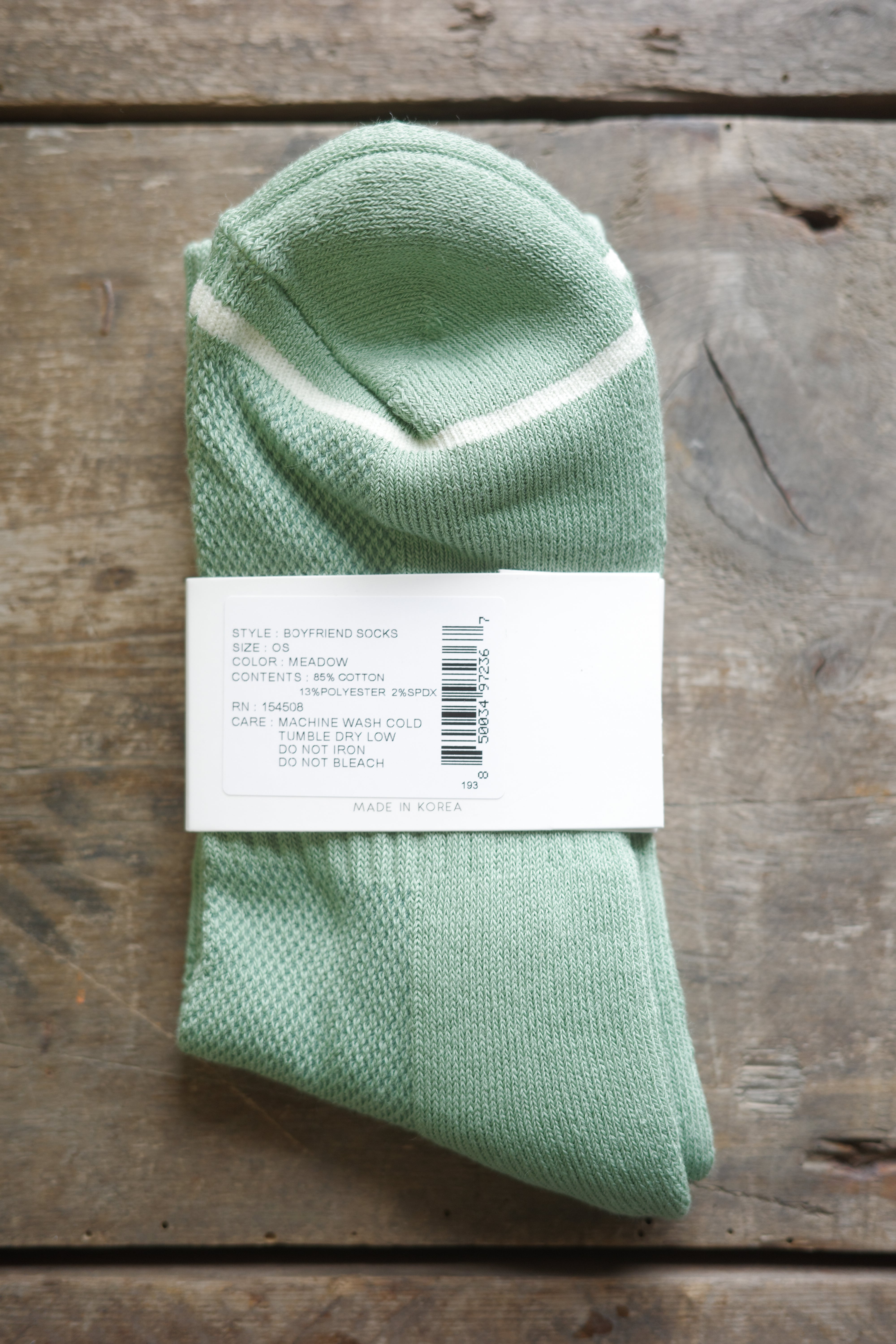 A signature style and year-round bestseller - the Boyfriend Socks capture a sporty vintage charm made for everyday wear. This slightly longer-than-crew sock features a contrast double stripe, mesh along the top of the foot for breathability, and elastic arch support. Durable, comfortable, and perfect for pairing with any shoe.