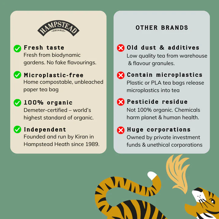 Properly plastic-free packaging (we see you, sneaky PLA glue). Hampstead's bags are fully home-compostable and biodegradable, because they don’t think people need to know about your tea break in 200 years.