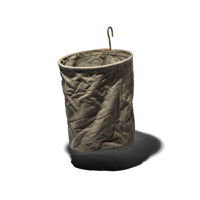PUEBCO’s Vintage Tent Fabric Hook Basket is made from reclaimed tent fabrics and supported by a steel frame. Each piece is unique, with assorted colours and patterns that reflect the fabric's previous life. Equipped with a hook for hanging, it’s perfect for storing laundry, toys, daily items, or simply as a decorative accent.