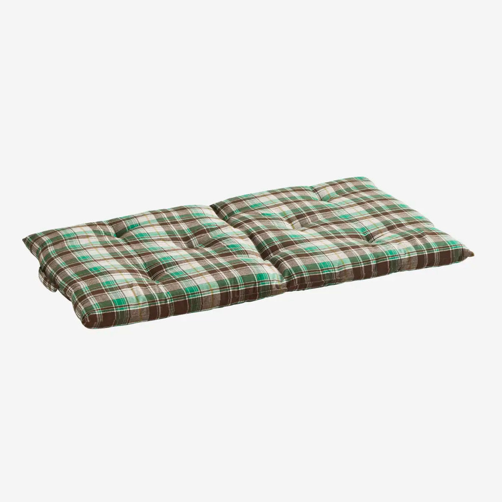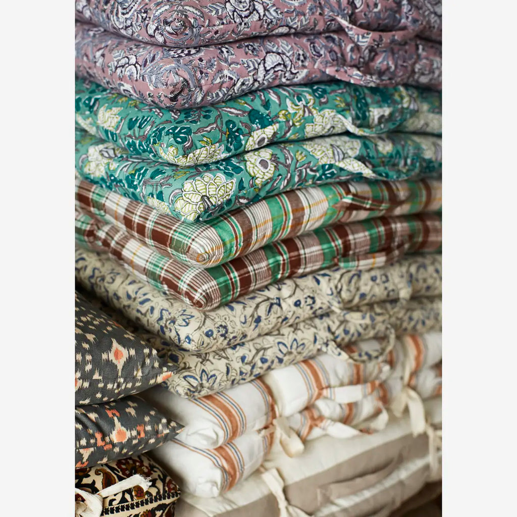 The filling is shredded cotton remnants from the production and the durable cotton quality will withstand cleaning with a damp cloth.