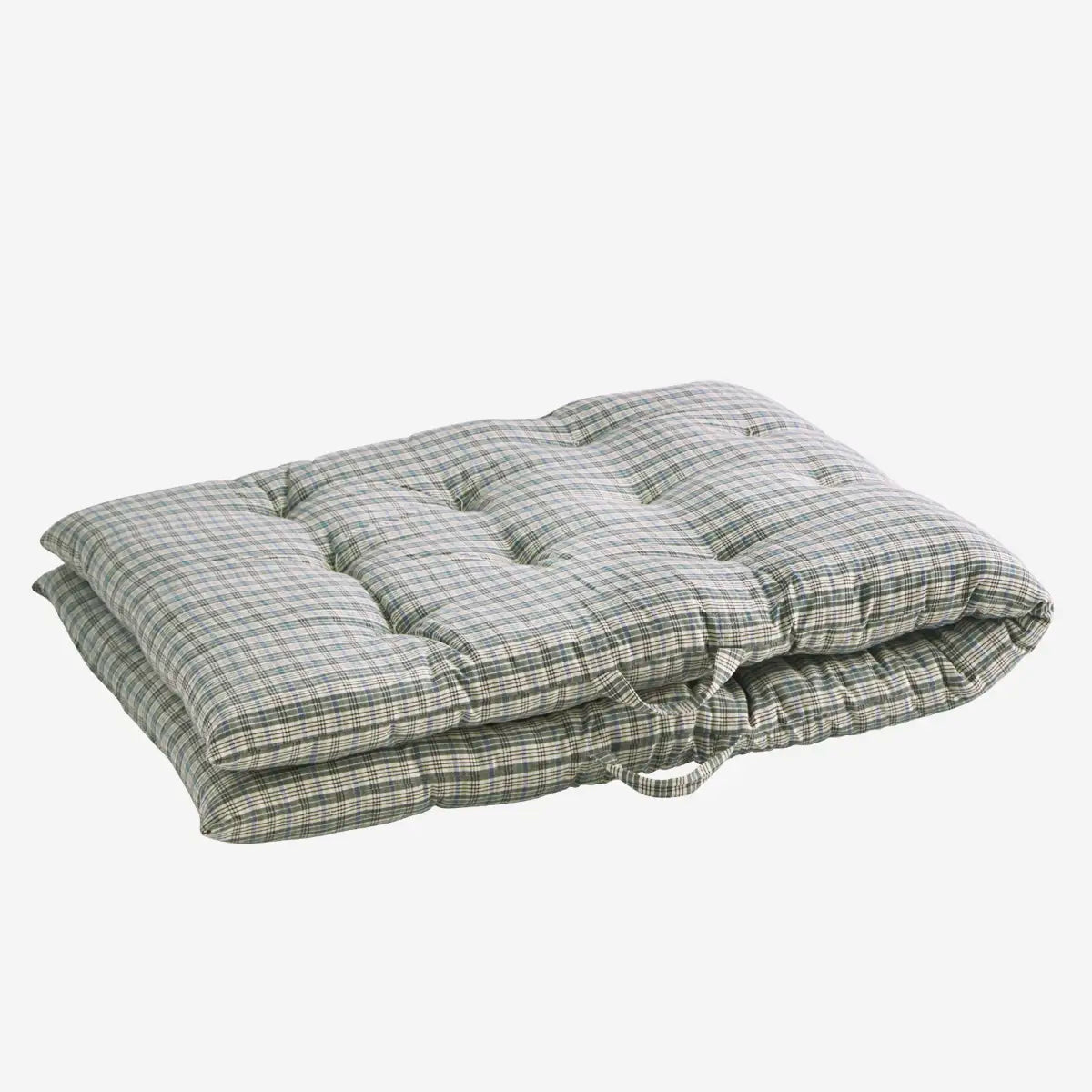 Checked Woven Cotton Mattress - Stone, Blue, Off White & Bordeaux