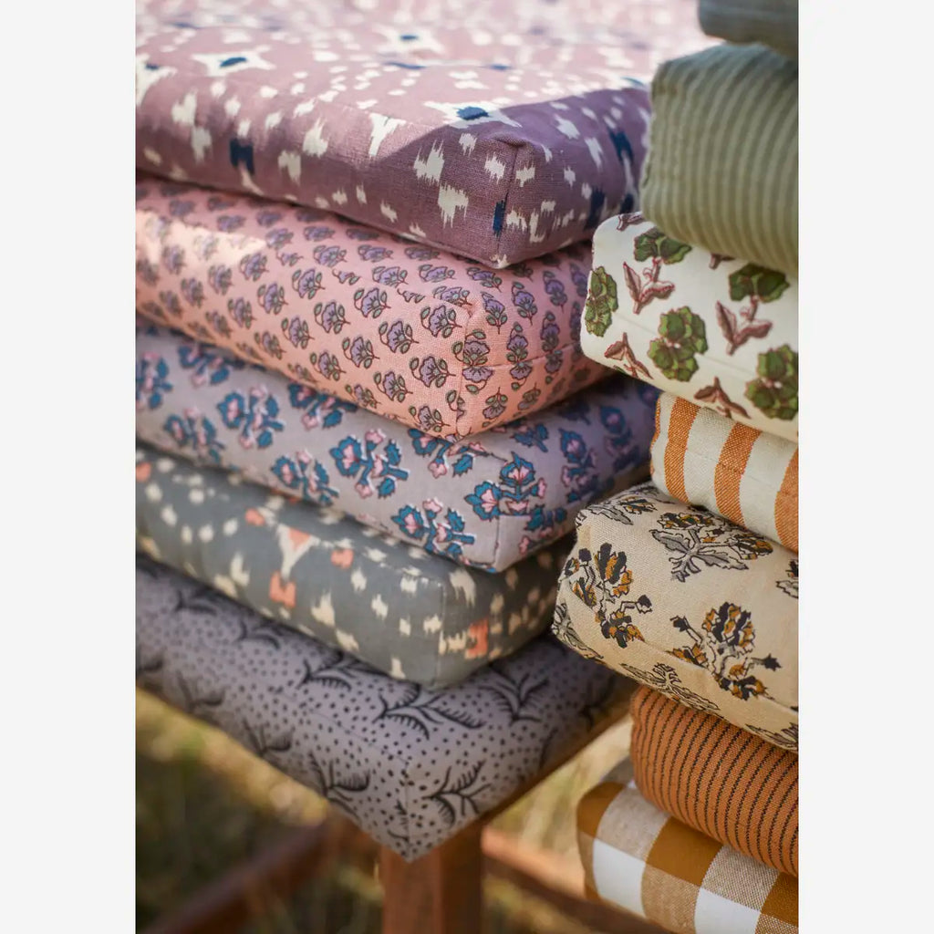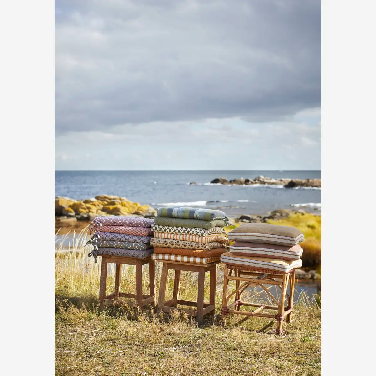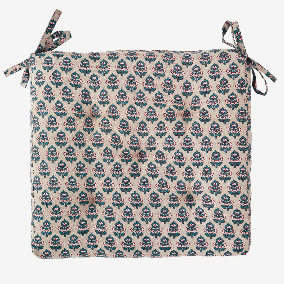 Printed Cotton Chair Pad - Taupe, Aqua & Pink
