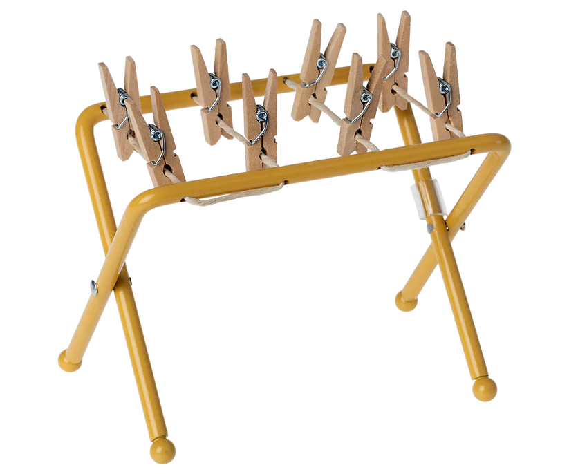 All families have a lot of laundry. This drying rack is made for the mouse family and fits their small-sized clothes. This set includes a drying rack and small wooden pegs.