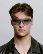 Devon - Glaucus Grey is a distinctive wraparound model with a sporty retro look. The curved design follows the face and combines fashion and function. A statement sunglass for active days and an urban everyday look.