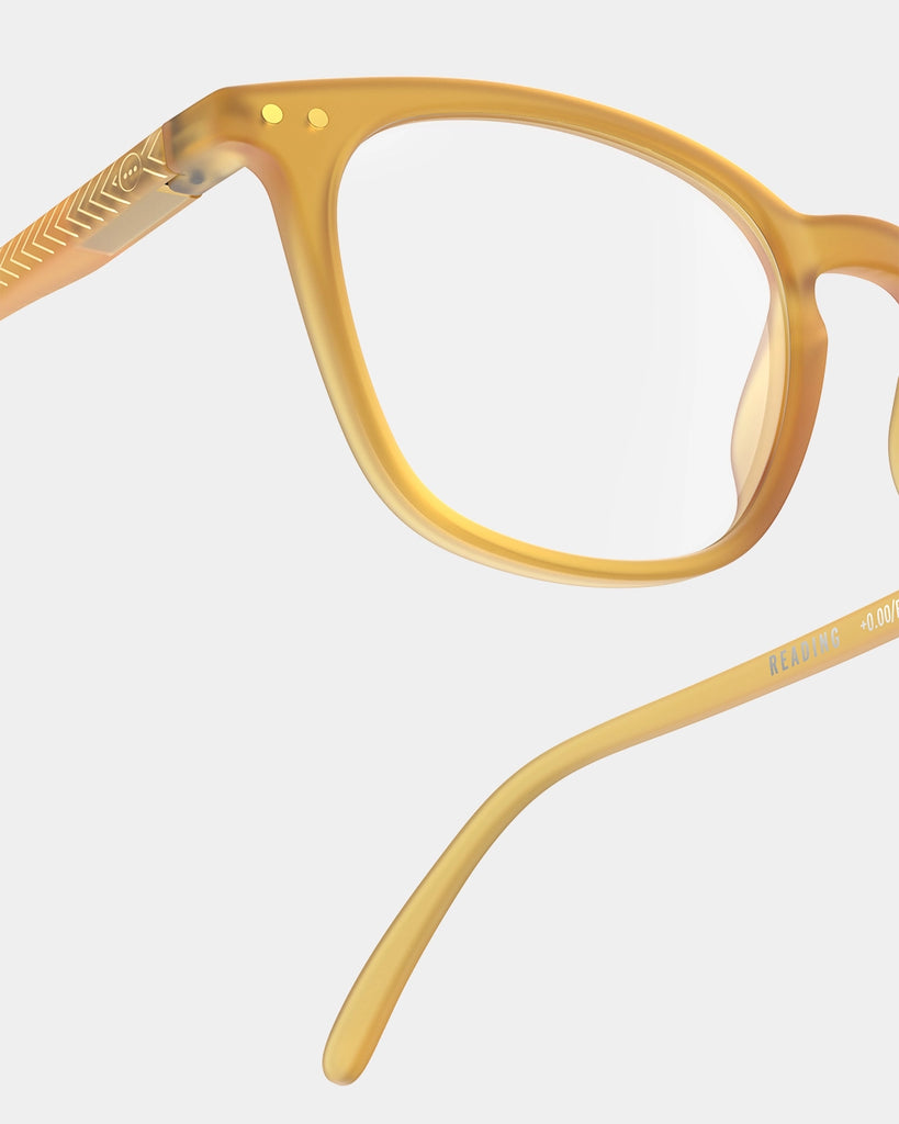 Reading glasses (presbyopia) - Shape #E: trapezium, large, structured - Unisex, universal model - Soft-touch effect frames - Storage bag included in the box.