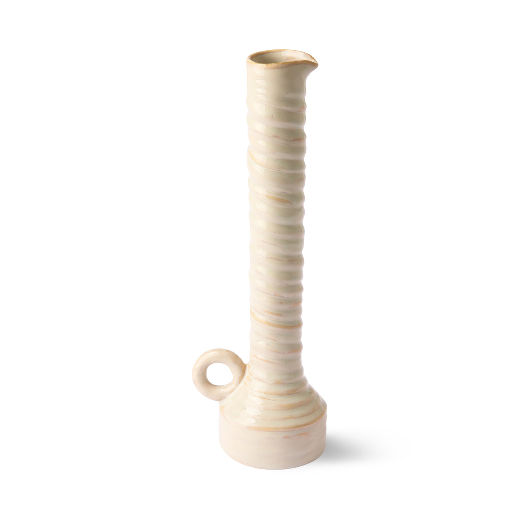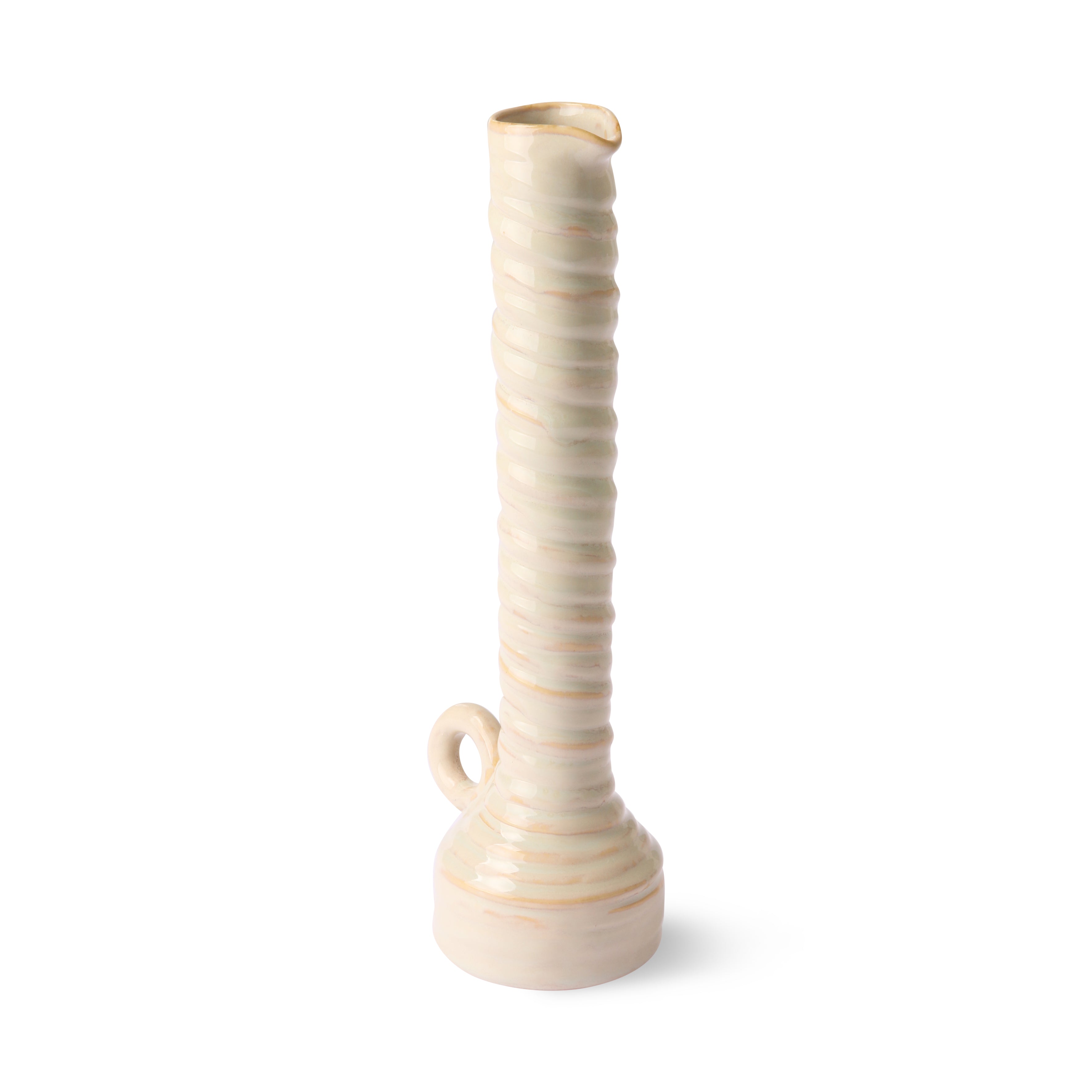 Love vintage, funky accessories? This ceramic vase has a twisted, elongated shape that gives it a unique and eye-catching look.