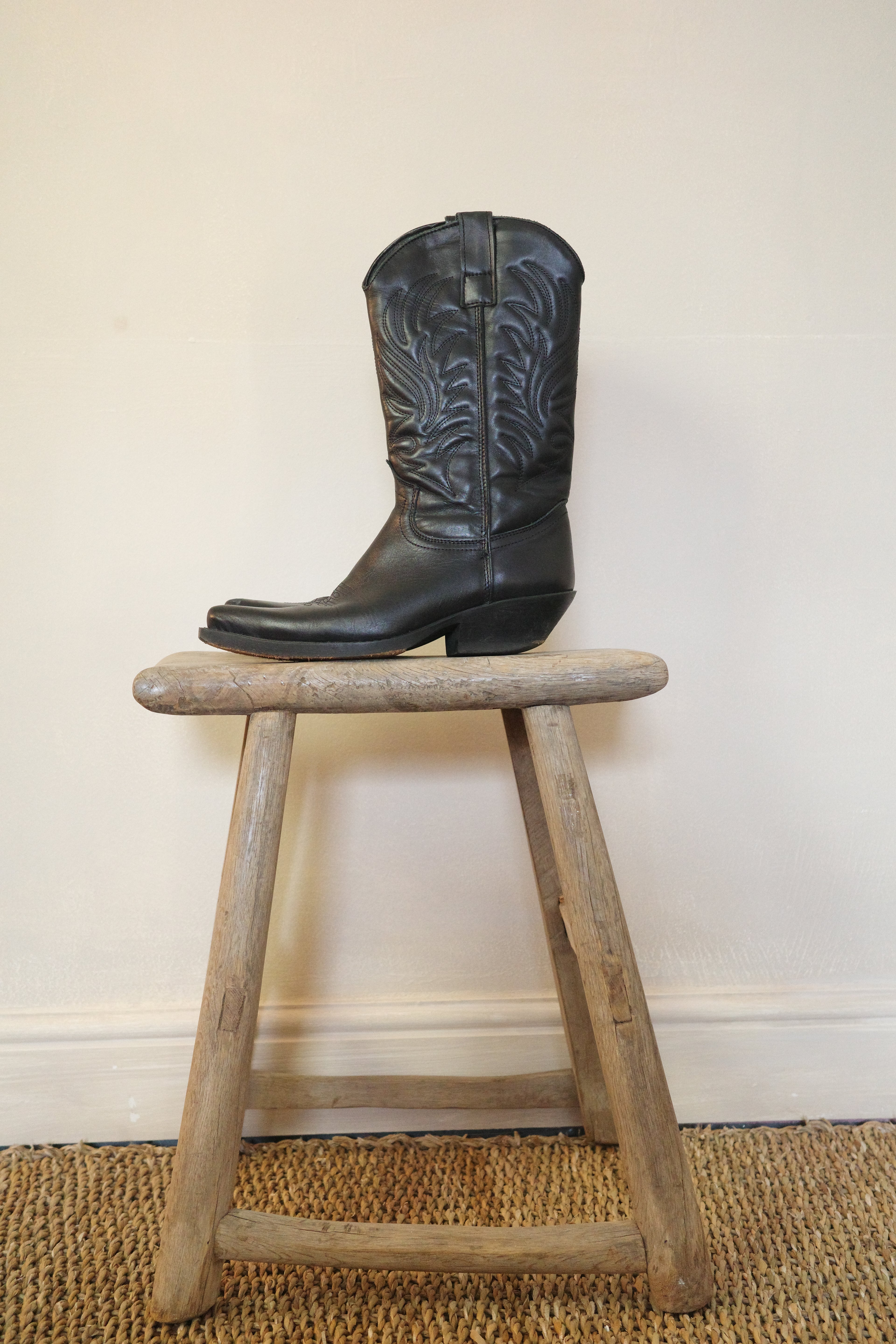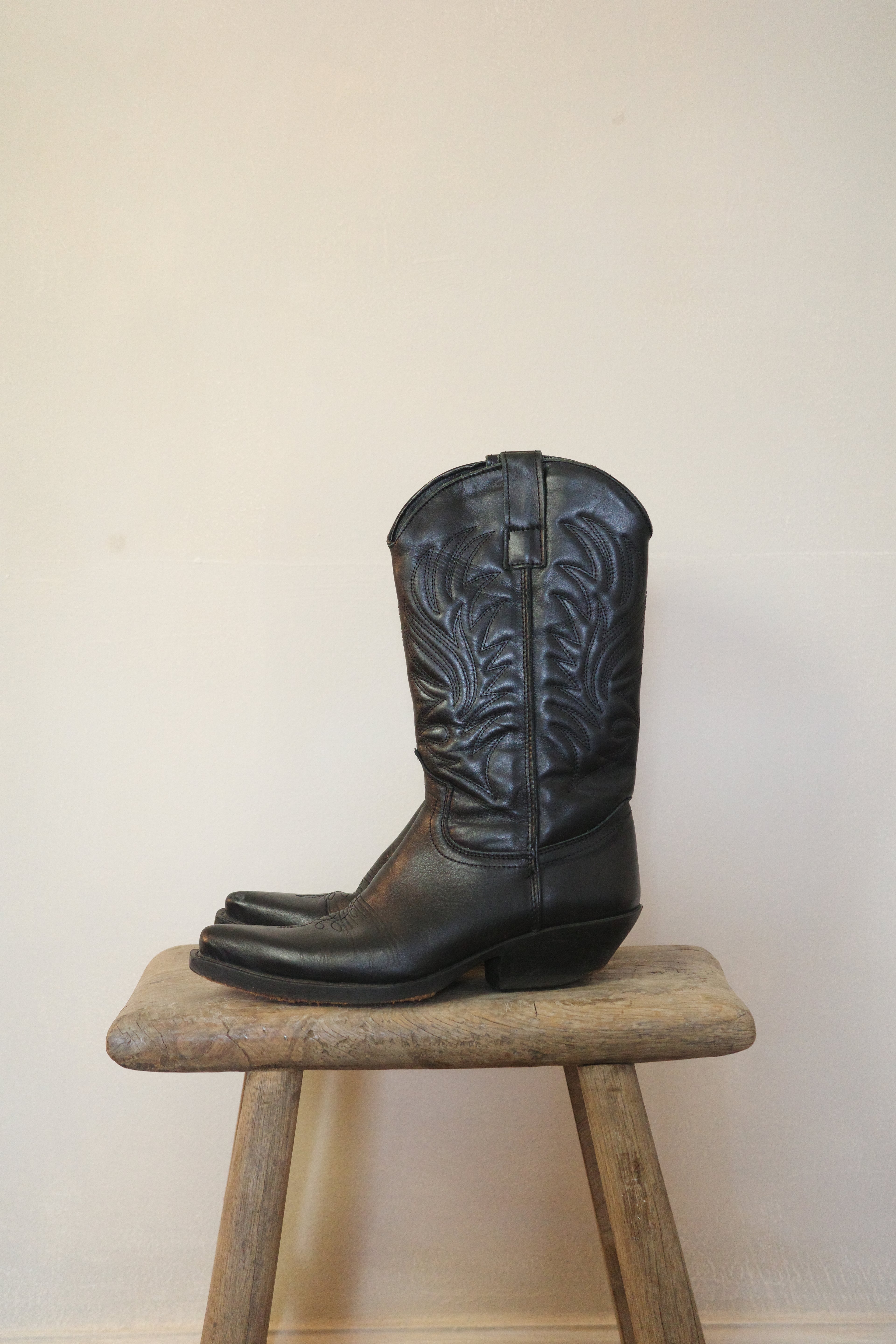 Black Leather Cowboy Boots