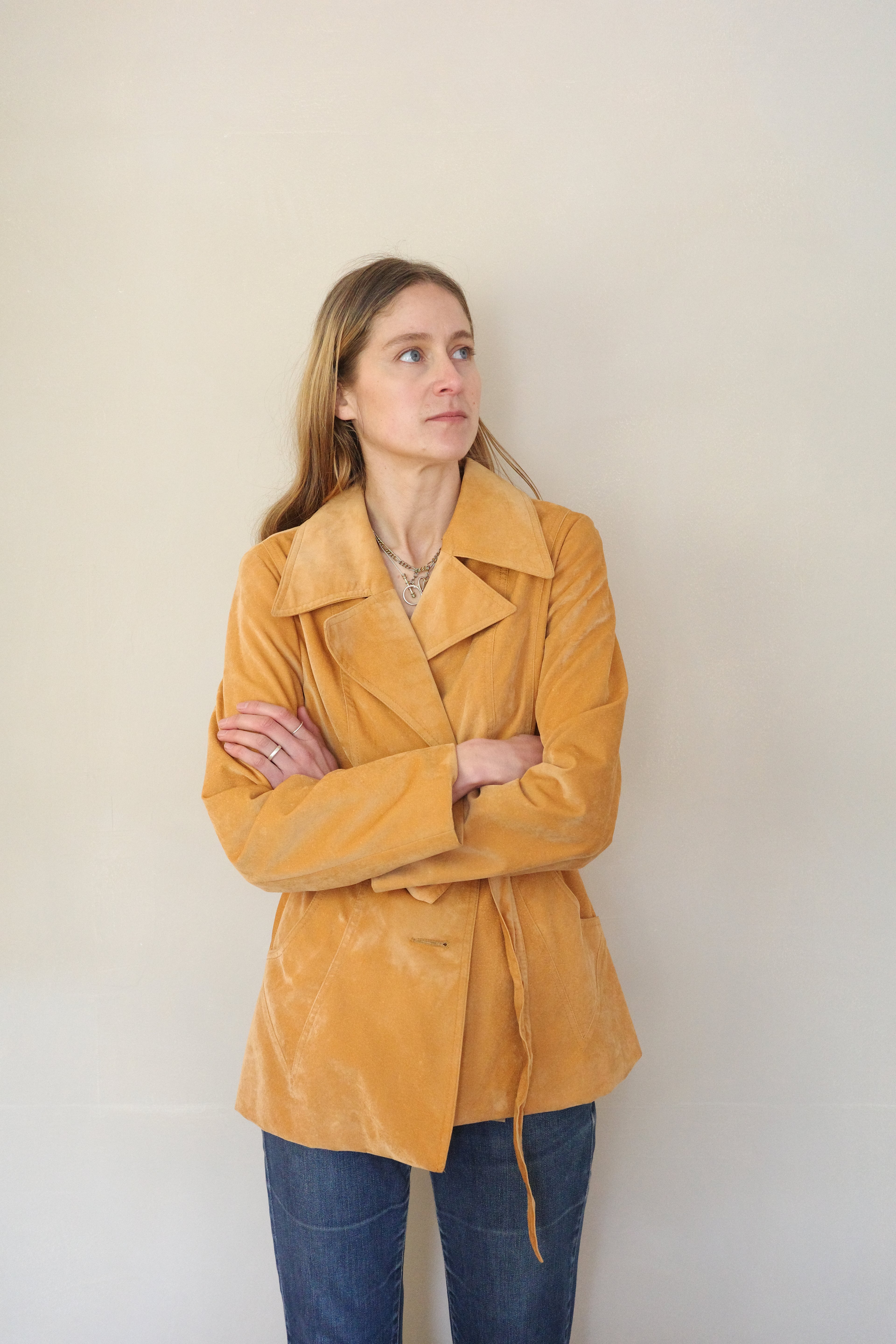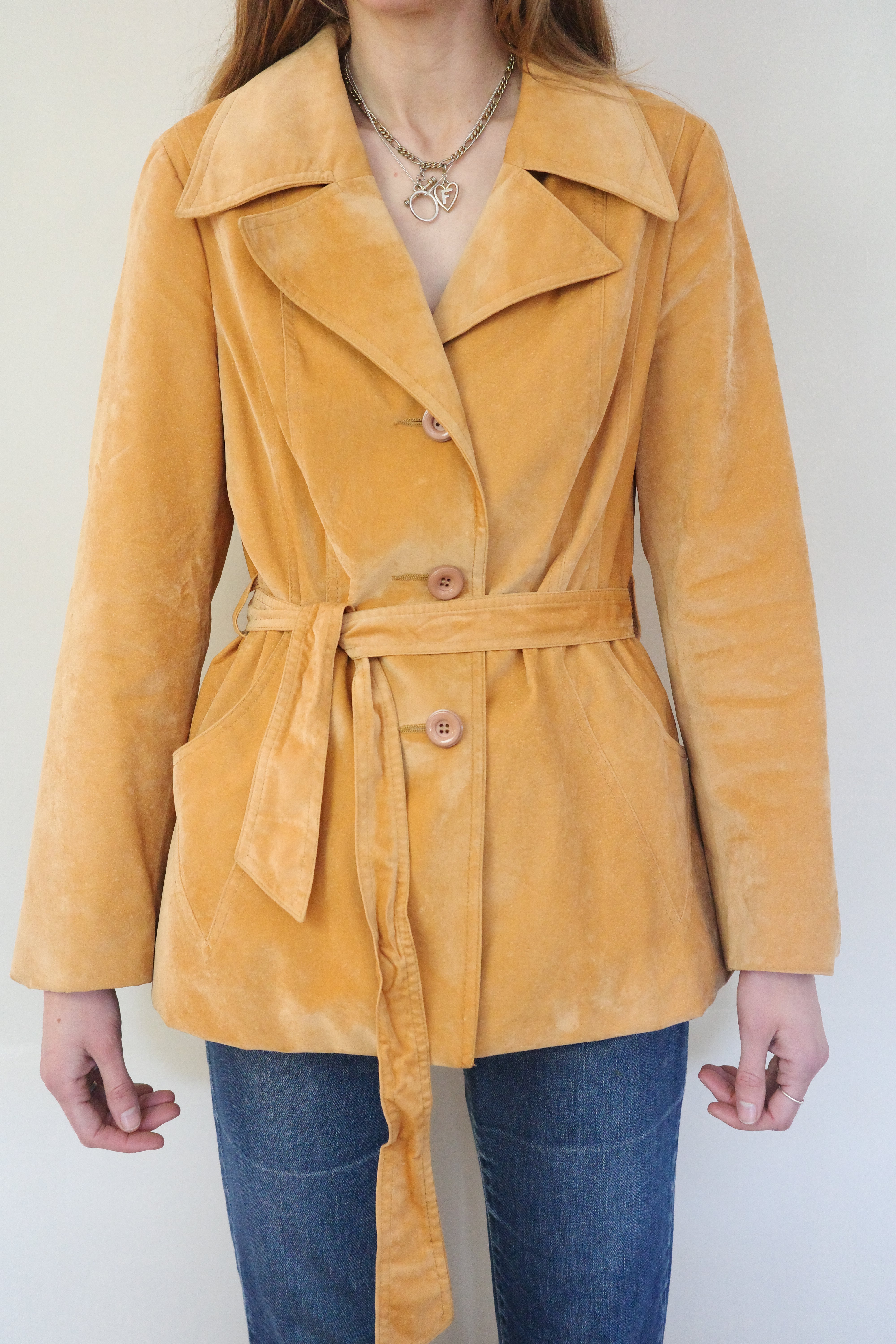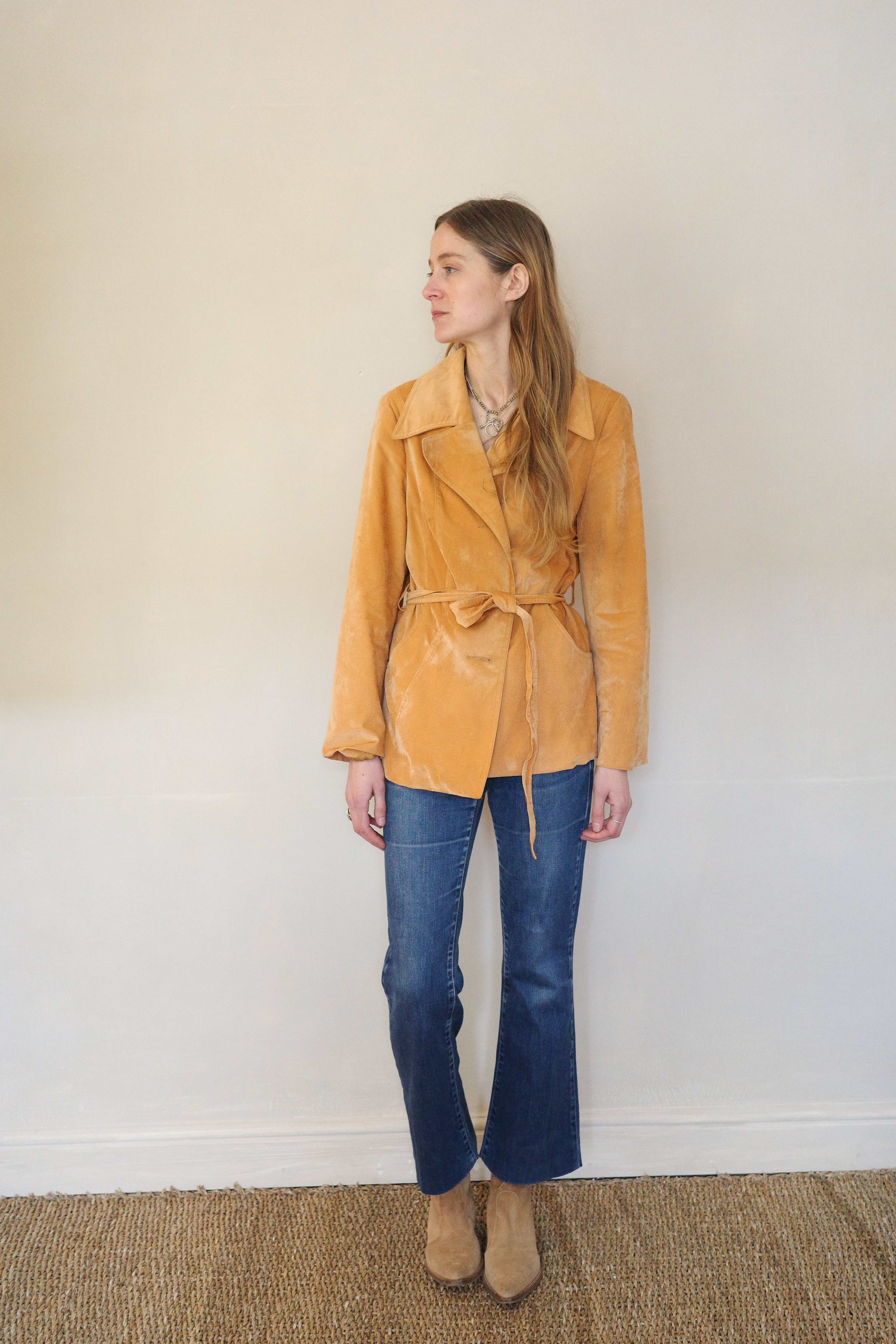 Ochre Velvet Jacket w Waist Tie