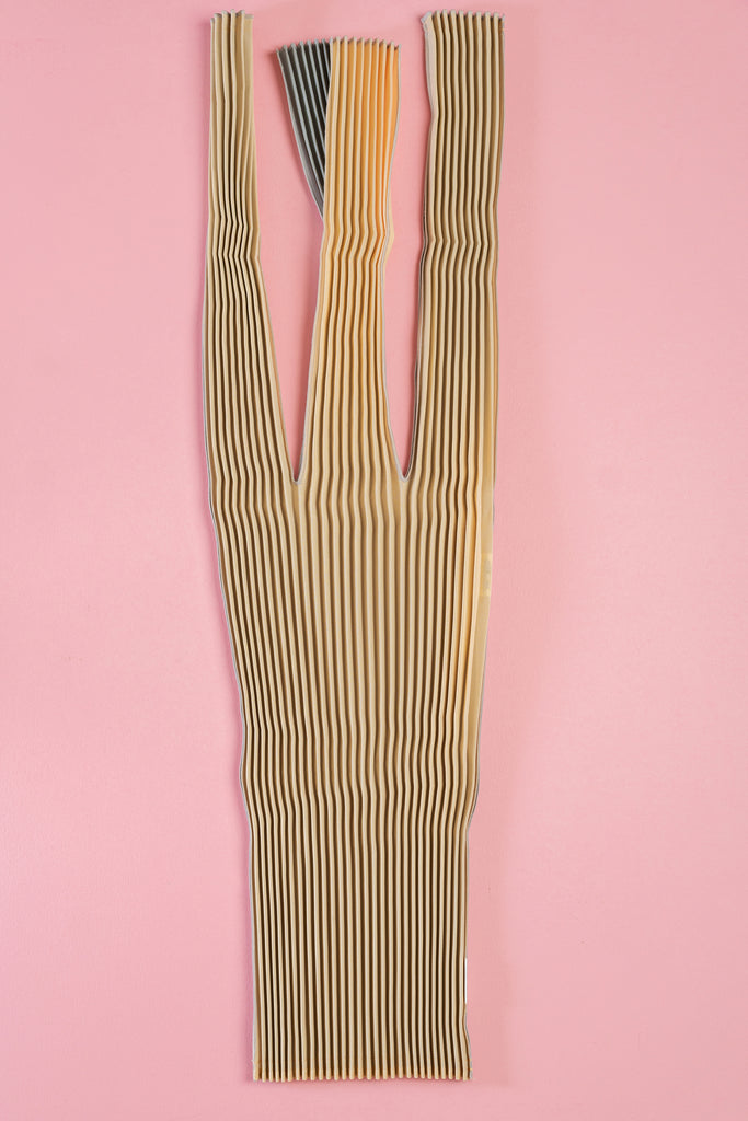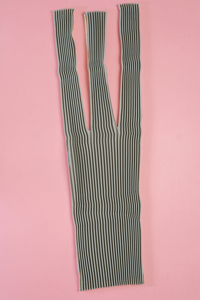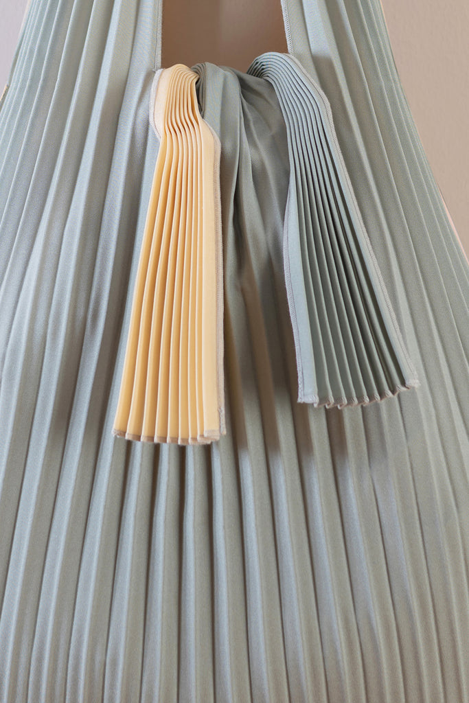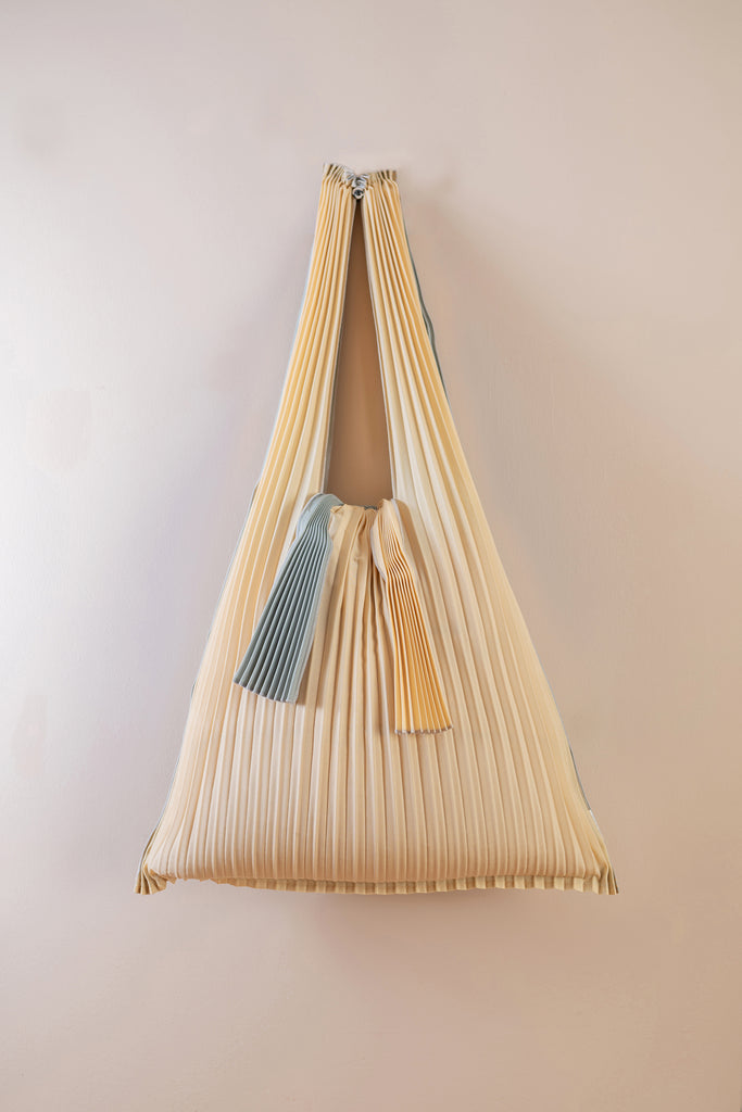 Vertical Pleated Large Tote Bag - Beige & Silver