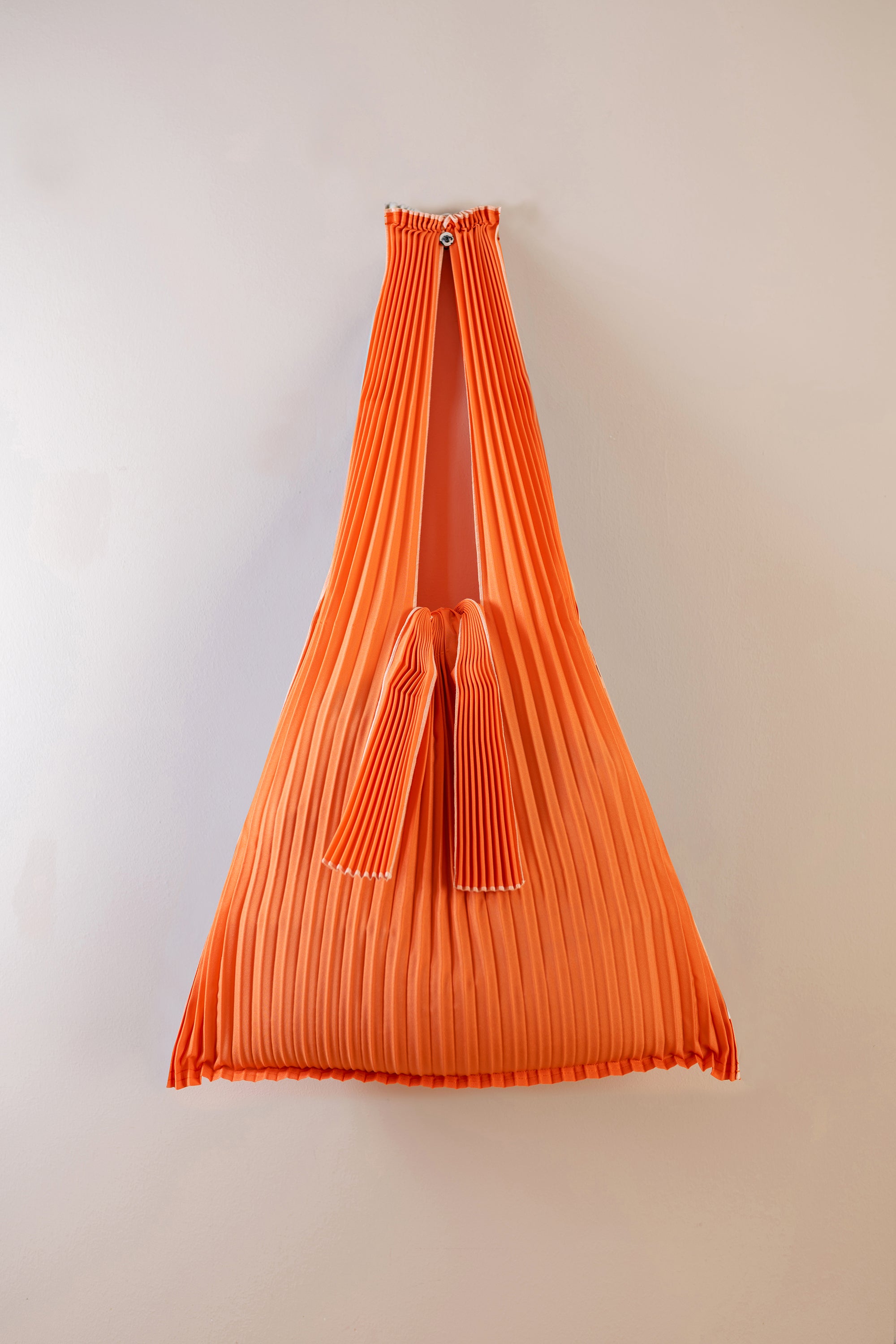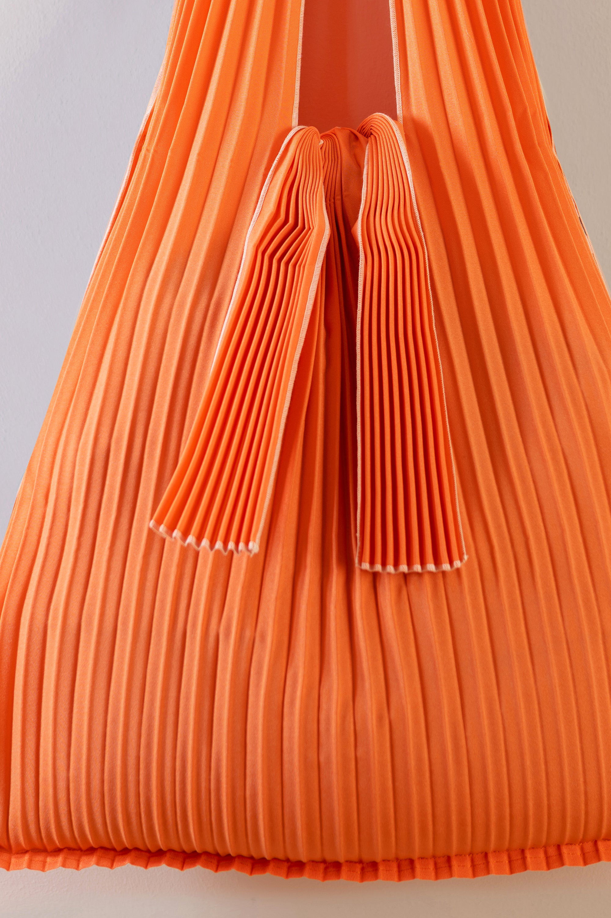 Large sized over the shoulder bag. By extending the pleats, the bag can carry the equivalent of a shopping basket. Roll or tie it up for keeping it compact. It withstands the weight up to 15kg, but it may tear by adding sudden force such as lifting it at a stretch, so please lift slowly when you put in a heavy item.