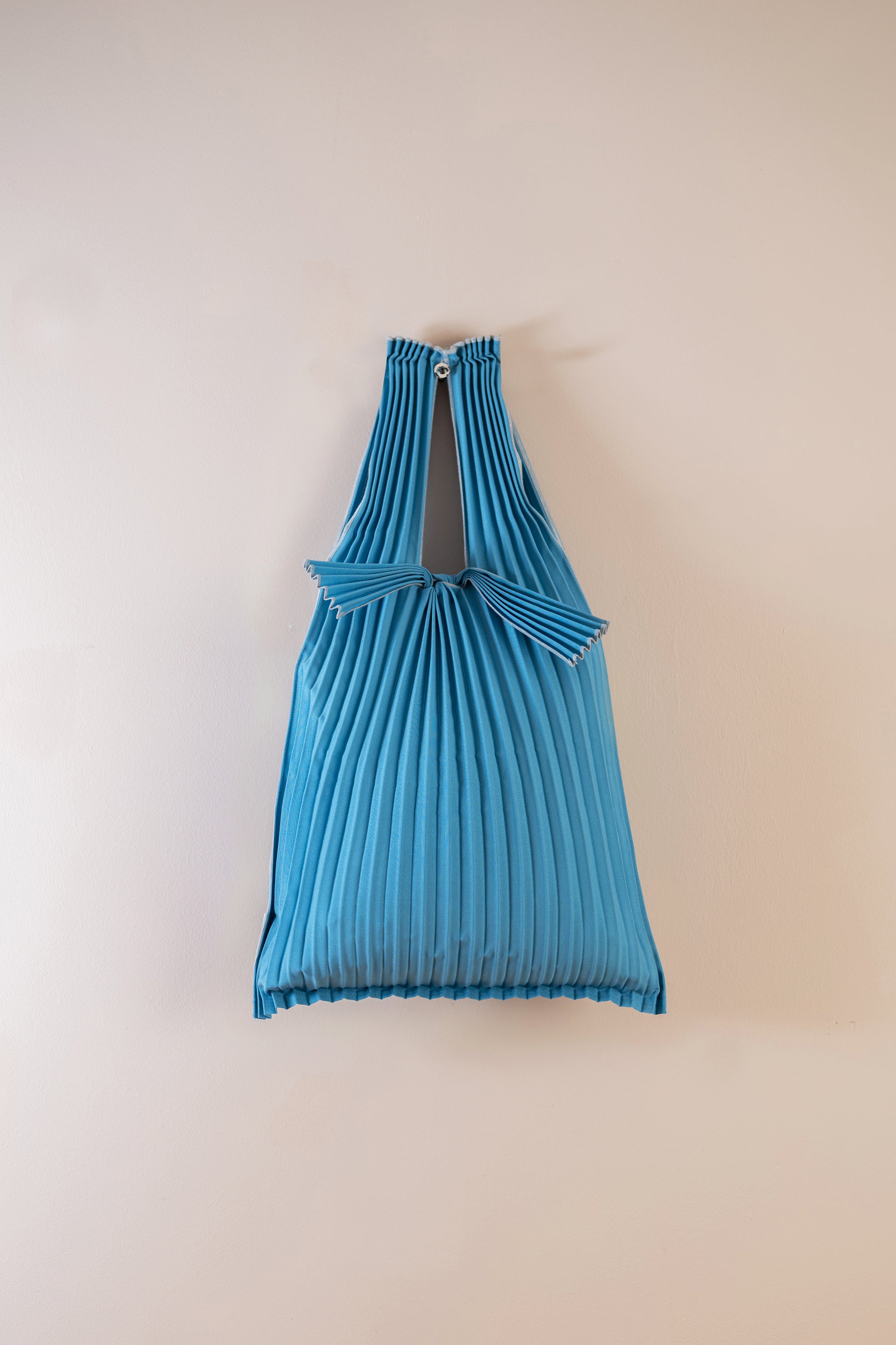 Hand carry tote. By extending the pleats, the bag can carry four 2L bottles, as well as A4 sized files. Roll or tie it up for keeping it compact. It withstands the weight up to 10kg, but it may tear by adding sudden force such as lifting it at a stretch, so please lift slowly when you put in a heavy item.