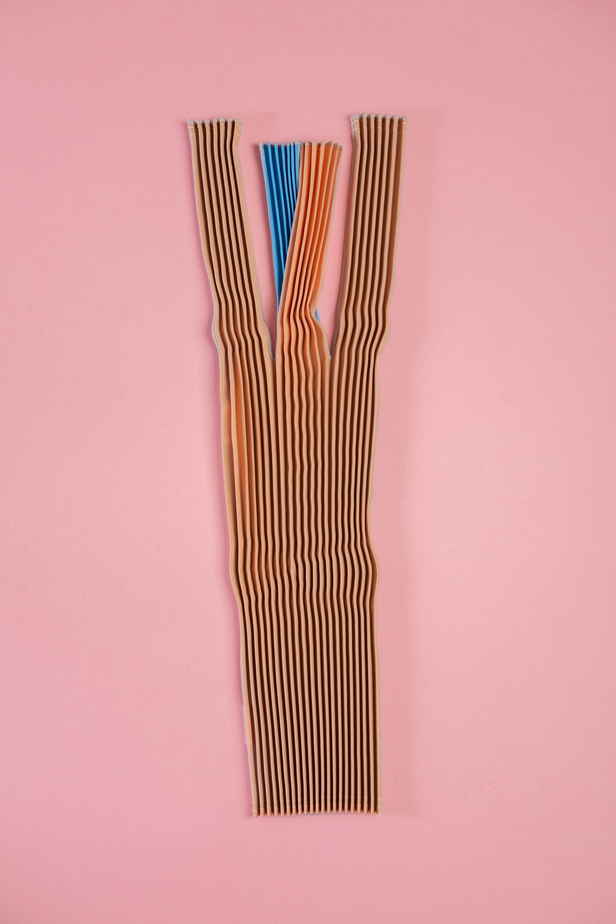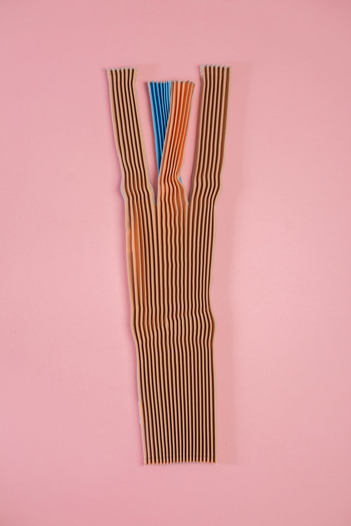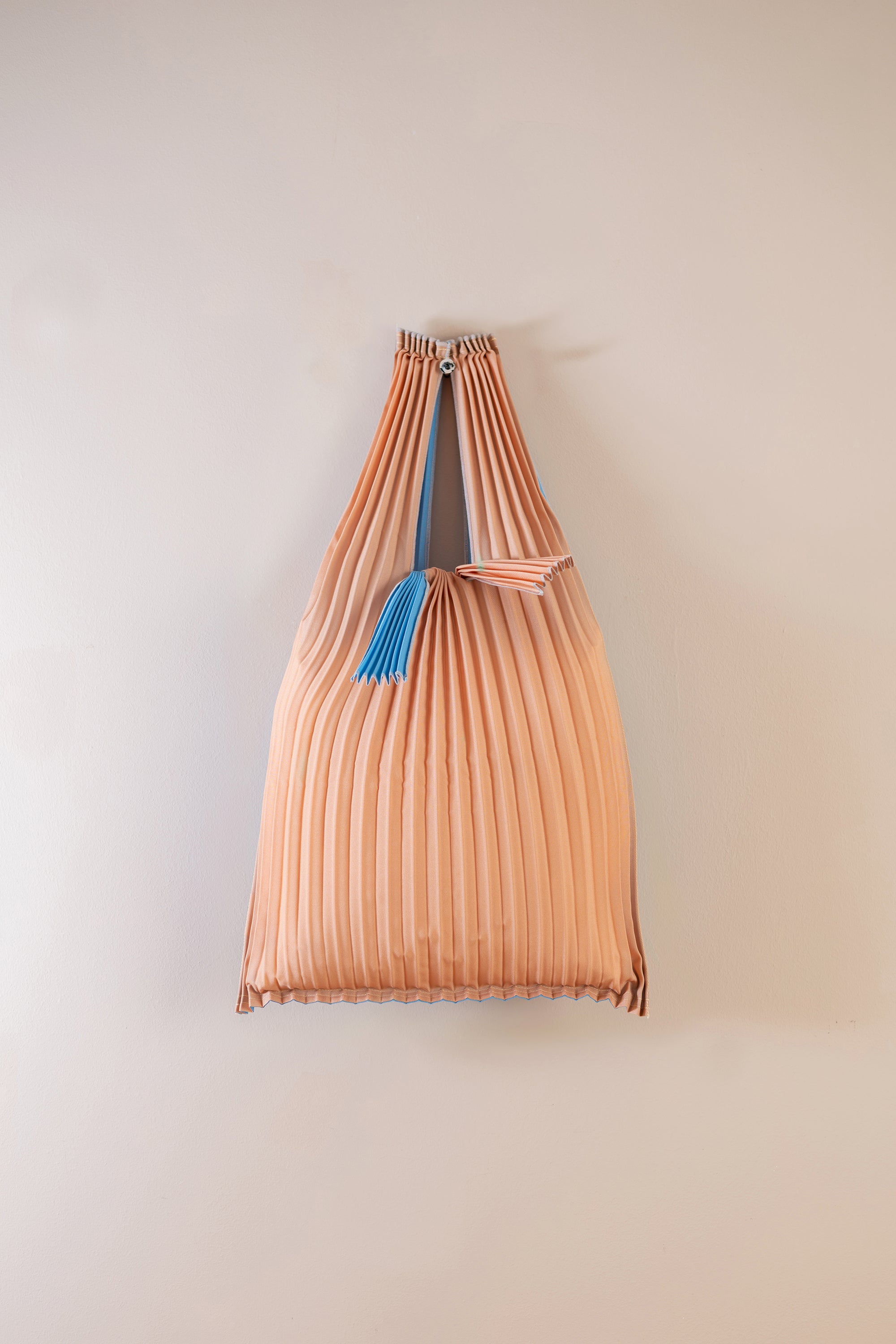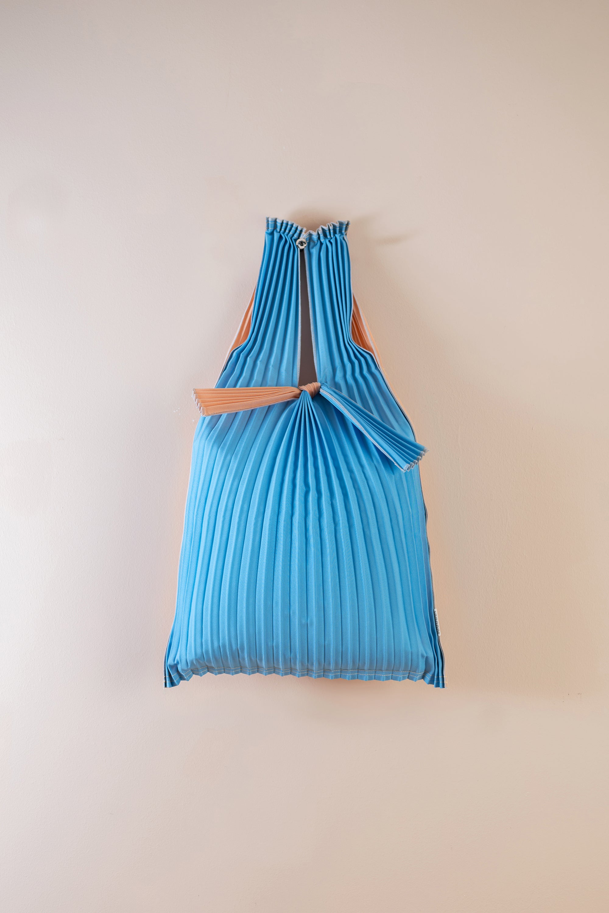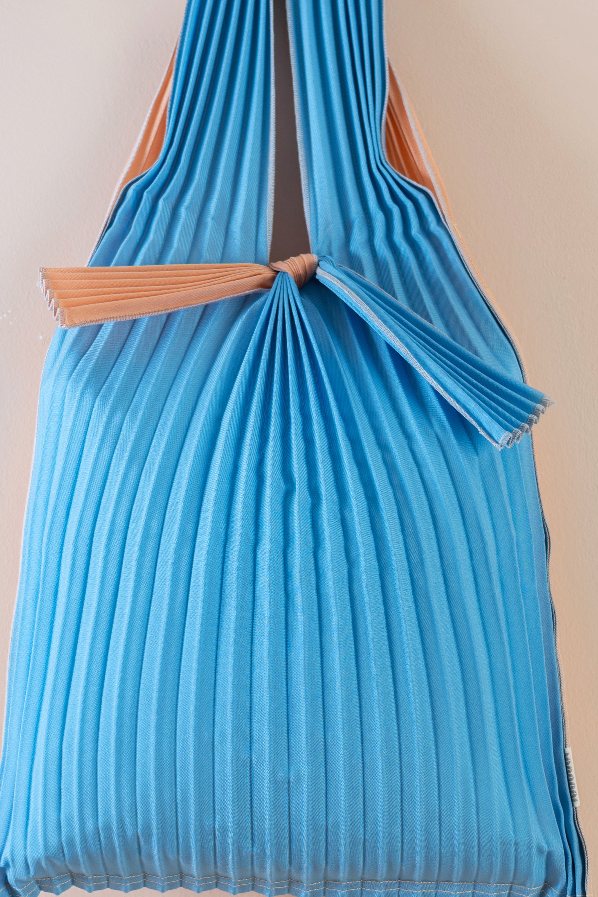 Vertical Pleated Small Tote Bag - Pink Beige & Sky Blue