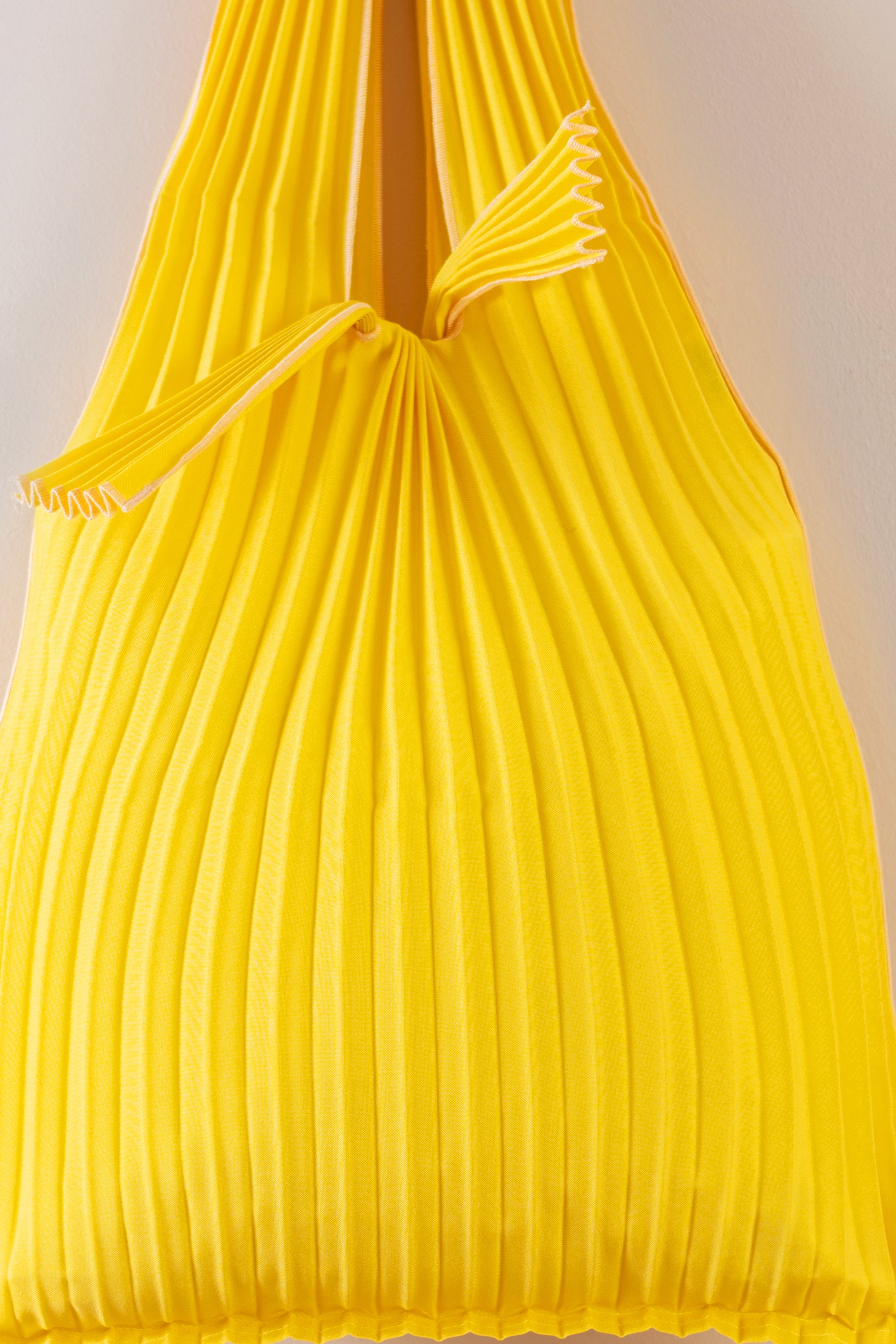 Vertical Pleated Small Tote Bag - Yellow