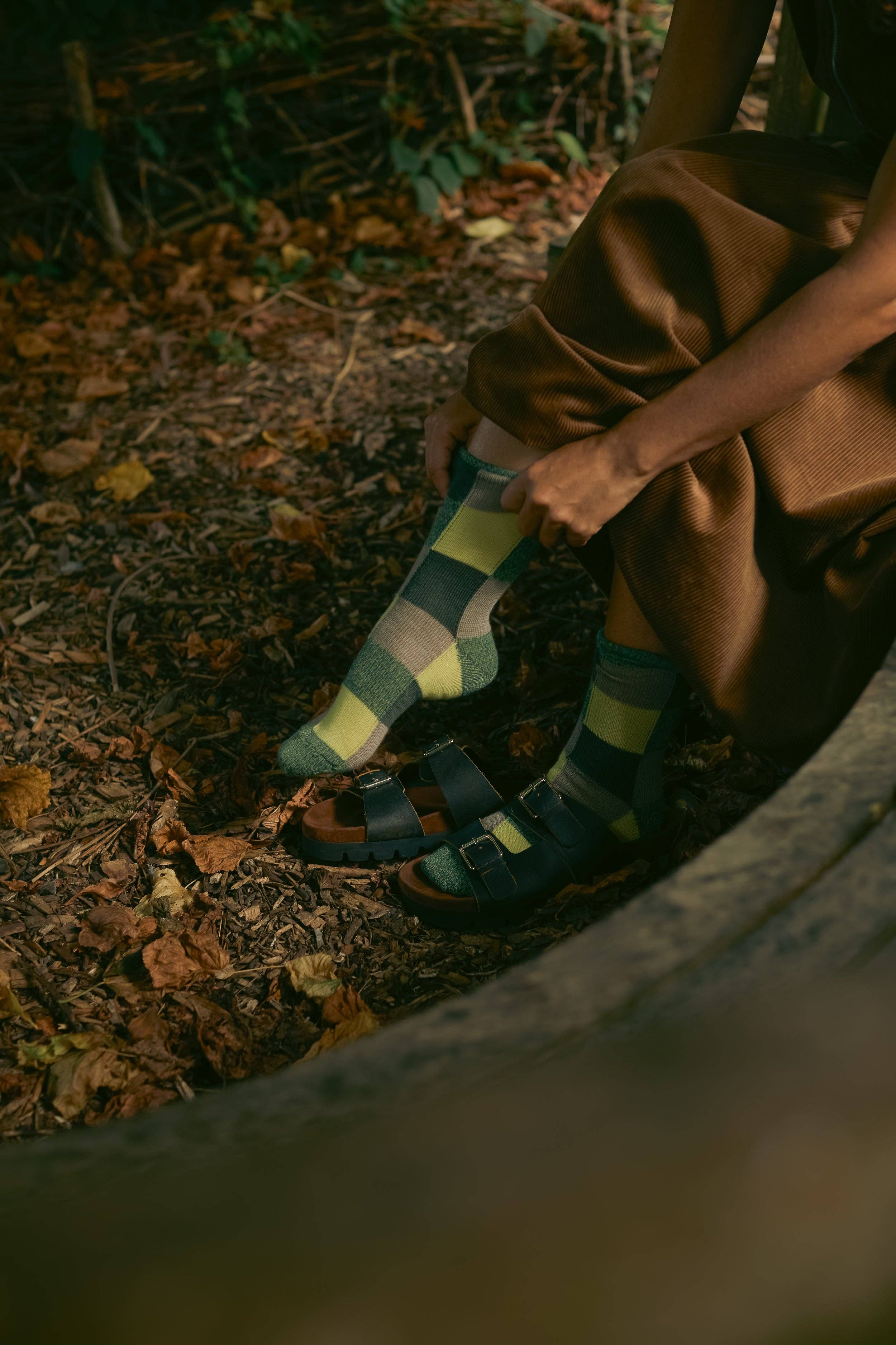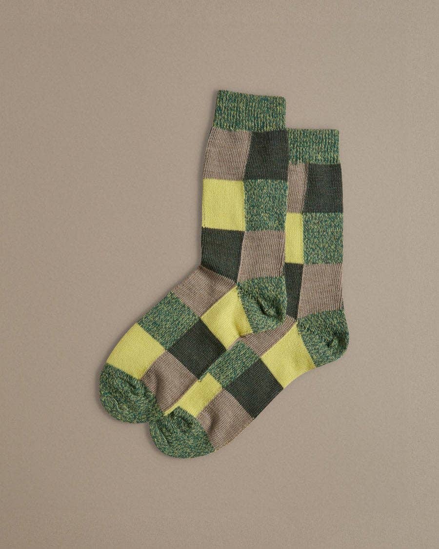 Fine Merino Wool Socks | Citrus Green Patchwork