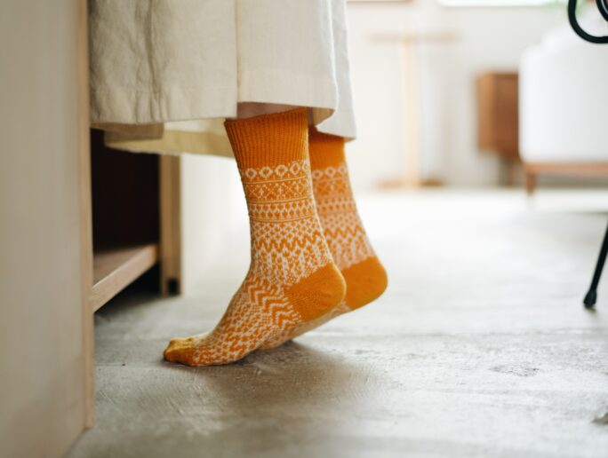 Shrink-proof wool was selected to produce these Jacquard socks. This plush material has volume similar to pile — enveloping the feet in softness and warmth.