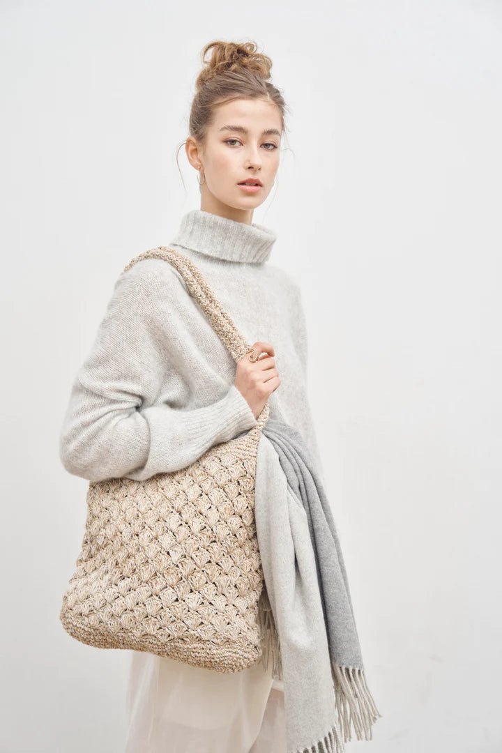 The tote bag is crocheted by hand in Kathmandu from hemp and cotton, and is perfect for everything from a trip to the beach, a day at the flea market and for everyday use all year round.