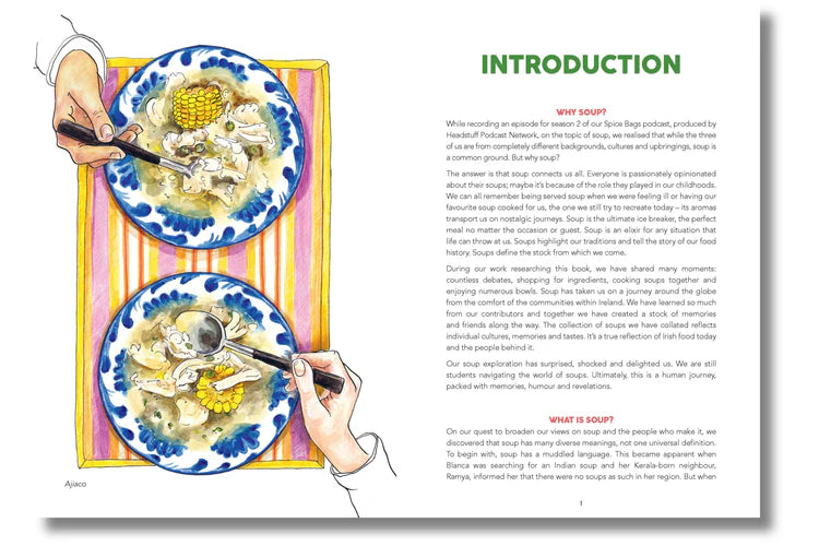 "Soup is a snapshot of who we are today, and what we eat today. It is a mezcla, where Ahmet Dede’s Turkish red lentil soup sits alongside Sasha Shyskina’s recipe for Ukrainian borsch. The book is both a manifesto, and a curriculum, because the authors show a continuum between Myrtle Allen’s watercress soup, and sopa de tortilla from the Dublin food truck El Milagro. We can describe their thesis as exploring both the Continuity of Change, and the Origin of Influence. They describe an Irish food world that is everything, everywhere, all at once, and they tell this story with subtlety and respect. Soup is a jewel, in a bowl." – John and Sally McKenna, McKennas' Guides