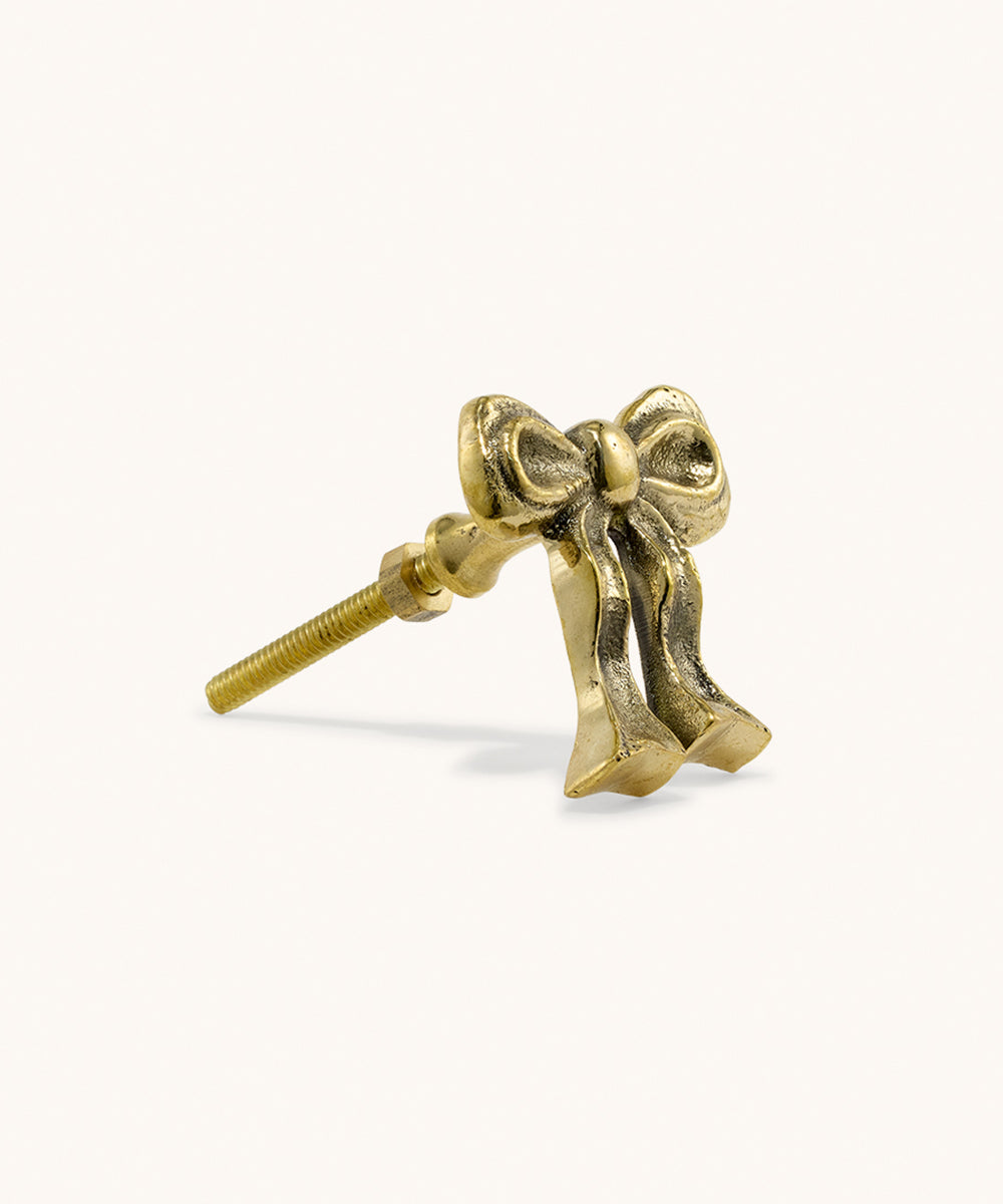 Discover the Bowie Bow Knob from our brass knobs collection—an easy interior hack to refresh your cabinet. This unique piece, 100% handmade by our team in India, is crafted from recycled brass and features a shiny gold finish. Designed to bring both style and functionality to your home, it’s perfect for cabinets, drawers, and doors.