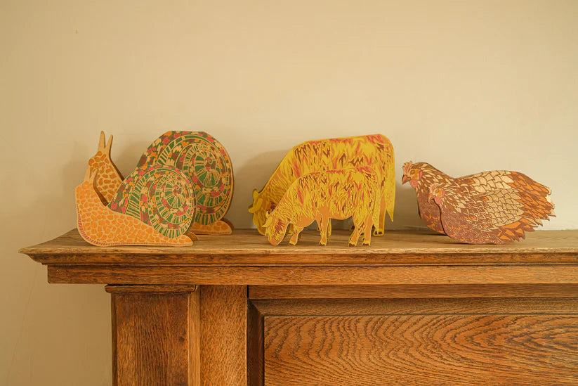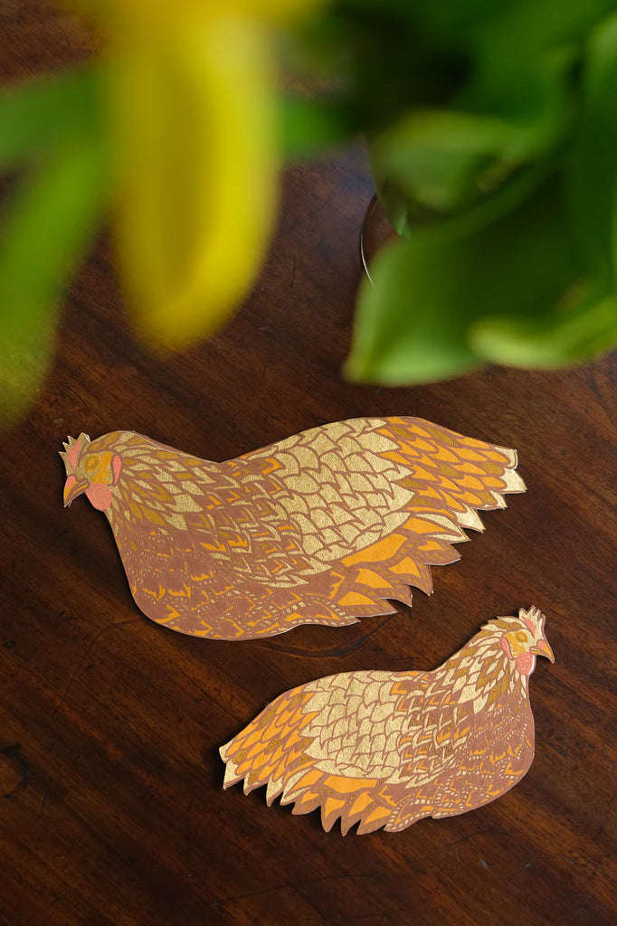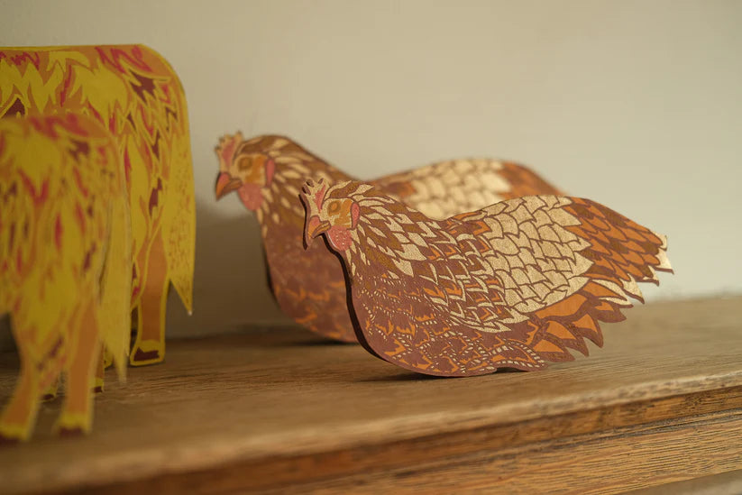 This chicken stands up and would be very happy sitting on any mantelpiece or table! Printed on both sides with a text panel for your message and printed matching envelope.