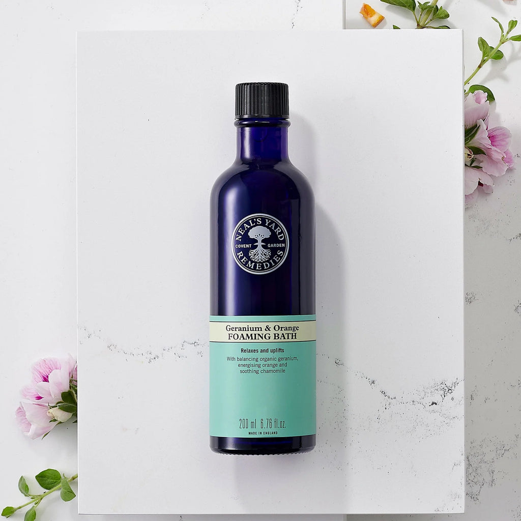 Create the perfect bath time with this gently cleansing, luxurious foaming bath. A beautifully uplifting blend of organic, balancing geranium, energising orange and soothing chamomile, helps you to relax body and mind.