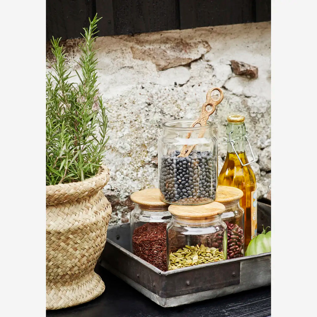 Store your kitchen staples stylishly with this lidded glass jar from Madam Stoltz.