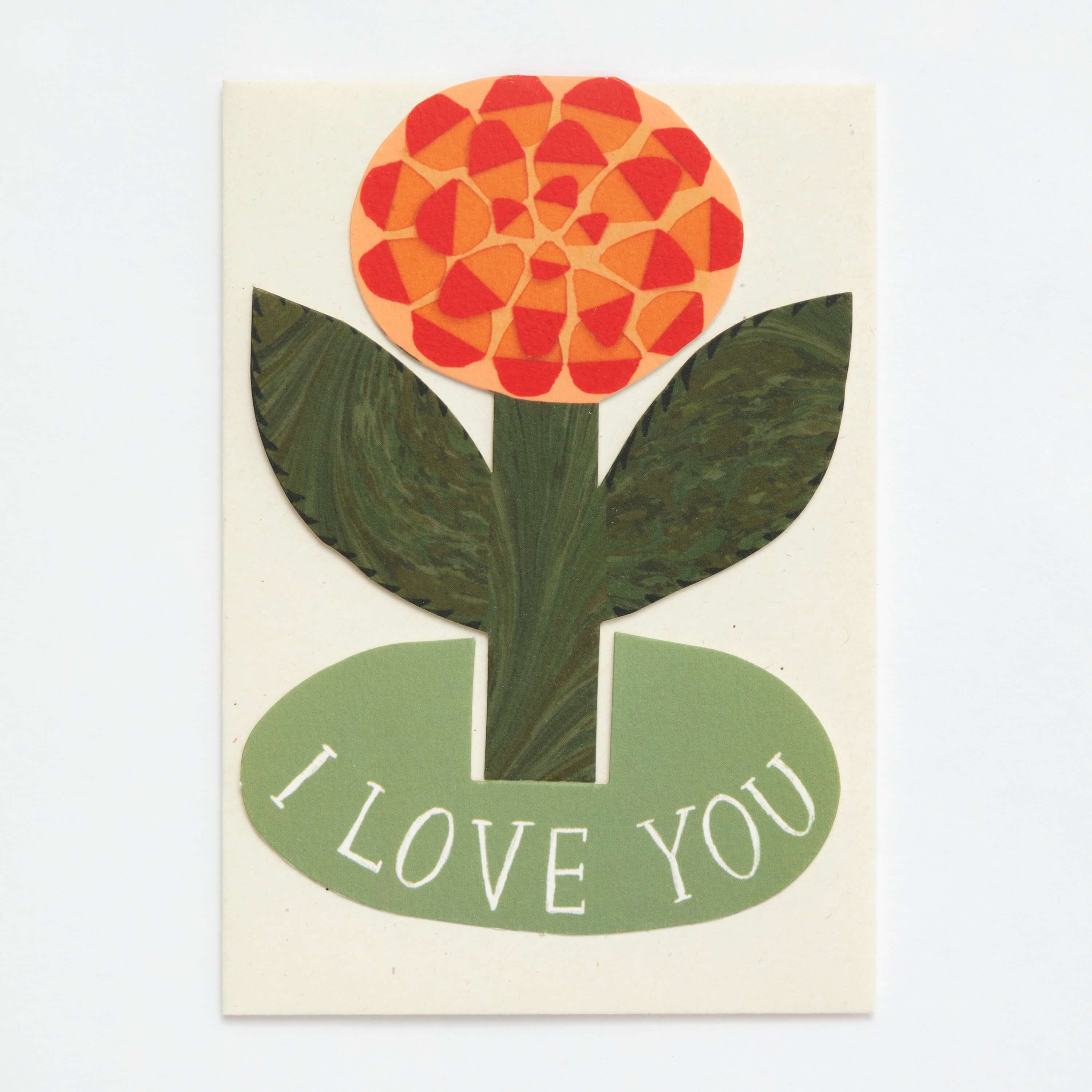 A bright little rose that tells someone they are loved! This beautiful red and orange rose card folds out to become free standing with the message 'I love you' on the base. Send a rose to your love that will last!