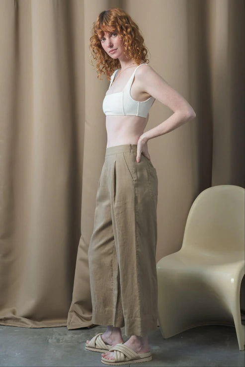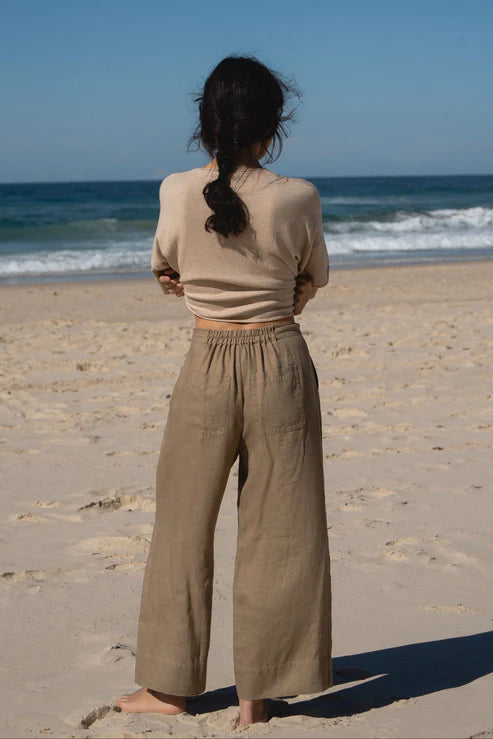 Get ready to rock this summer in our Lilly Pilly Ivy crop pants made from 100% premium EUROPEAN FLAX. These chic crop pants feature a straight wide leg and convenient side and back pockets, perfect for stashing your essentials. The side invisible zipper and elastic back waist band make for a comfortable fit, while the French seam adds a touch of sophistication.