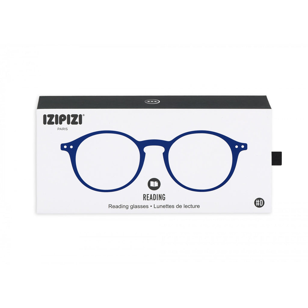 Reading glasses - #D READING Navy Blue: reading glasses for presbyopia, round, timeless, best-selling shape. Unisex, universal model. Original, fashionable design. Glossy frame on the outside and soft touch on the inside.