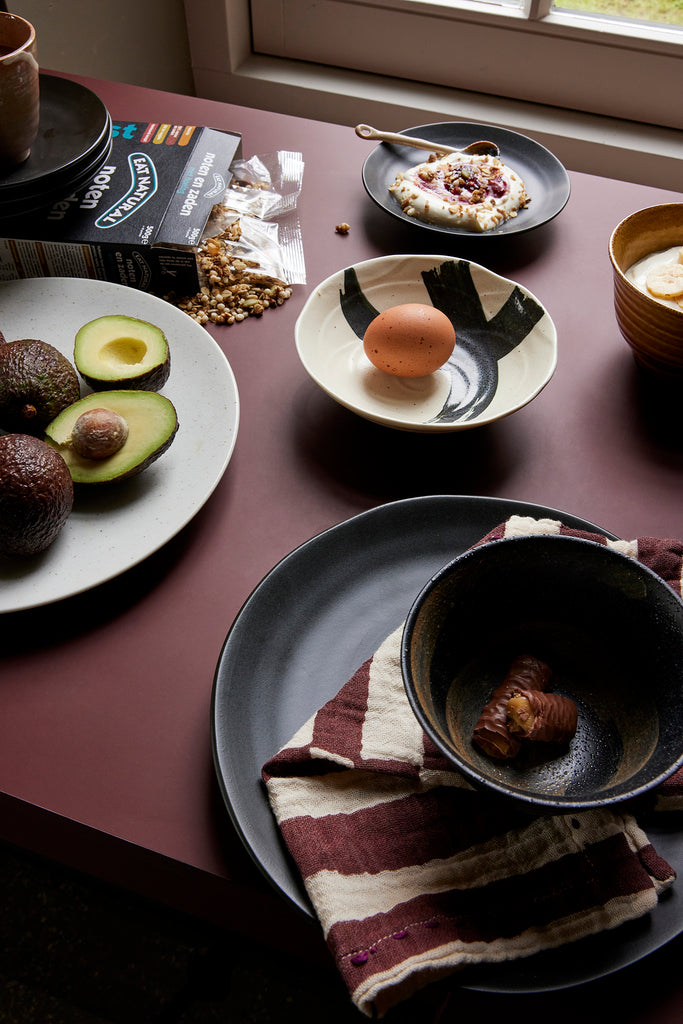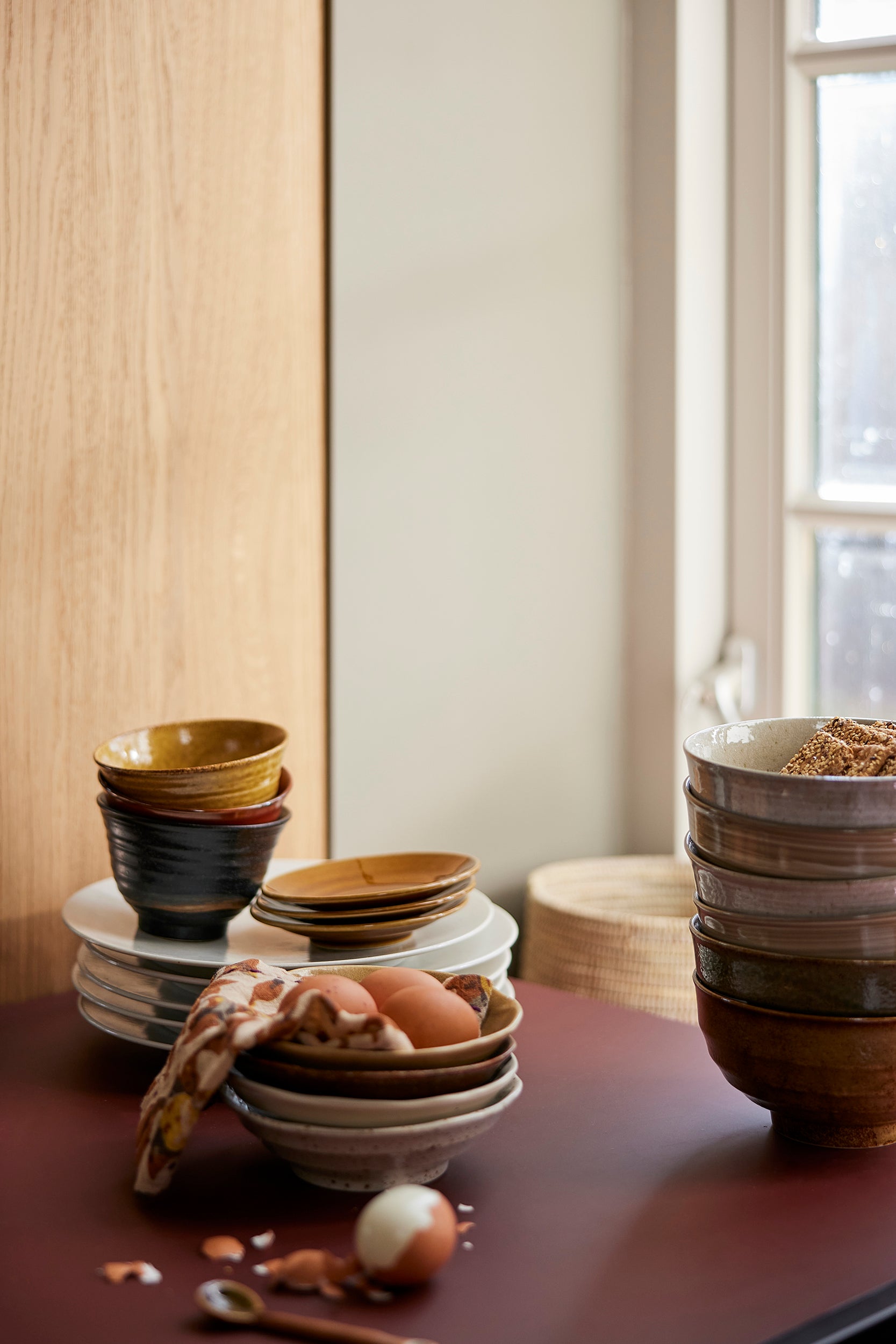 The tradition of the Japanese tea ceremony inspired us to create this range of earthy tableware. All items in the Kyoto ceramics family are hand finished, which gives them this quirky unique look.