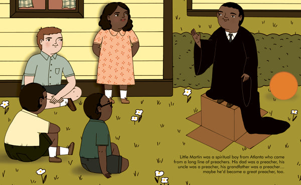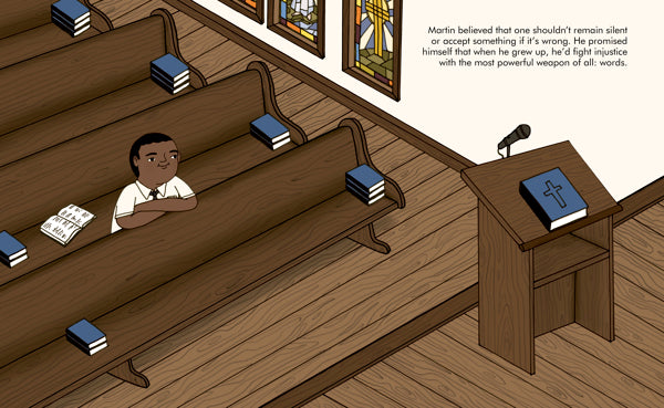 Little Martin grew up in a family of preachers: his dad was a preacher, his uncle was a preacher, his grandfather was a preacher… so maybe he’d become a great preacher too. One day, a friend invited him to play at his house. Martin was shocked when his mother wouldn’t let him in because he was black. That day he realized there was something terribly unfair going on. Martin believed that no one should remain silent and accept something if it's wrong. And he promised himself that – when he grew up – he’d fight injustice with the most powerful weapon of all: words. This moving book features stylish and quirky illustrations and extra facts at the back, including a biographical timeline with historical photos and a detailed profile of the inspiring activist’s life.