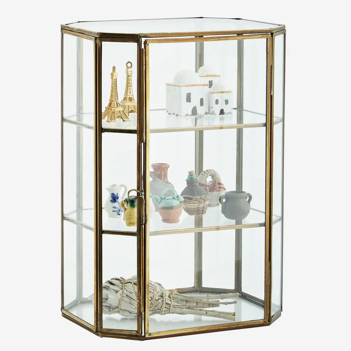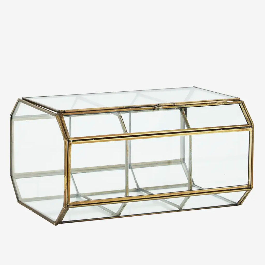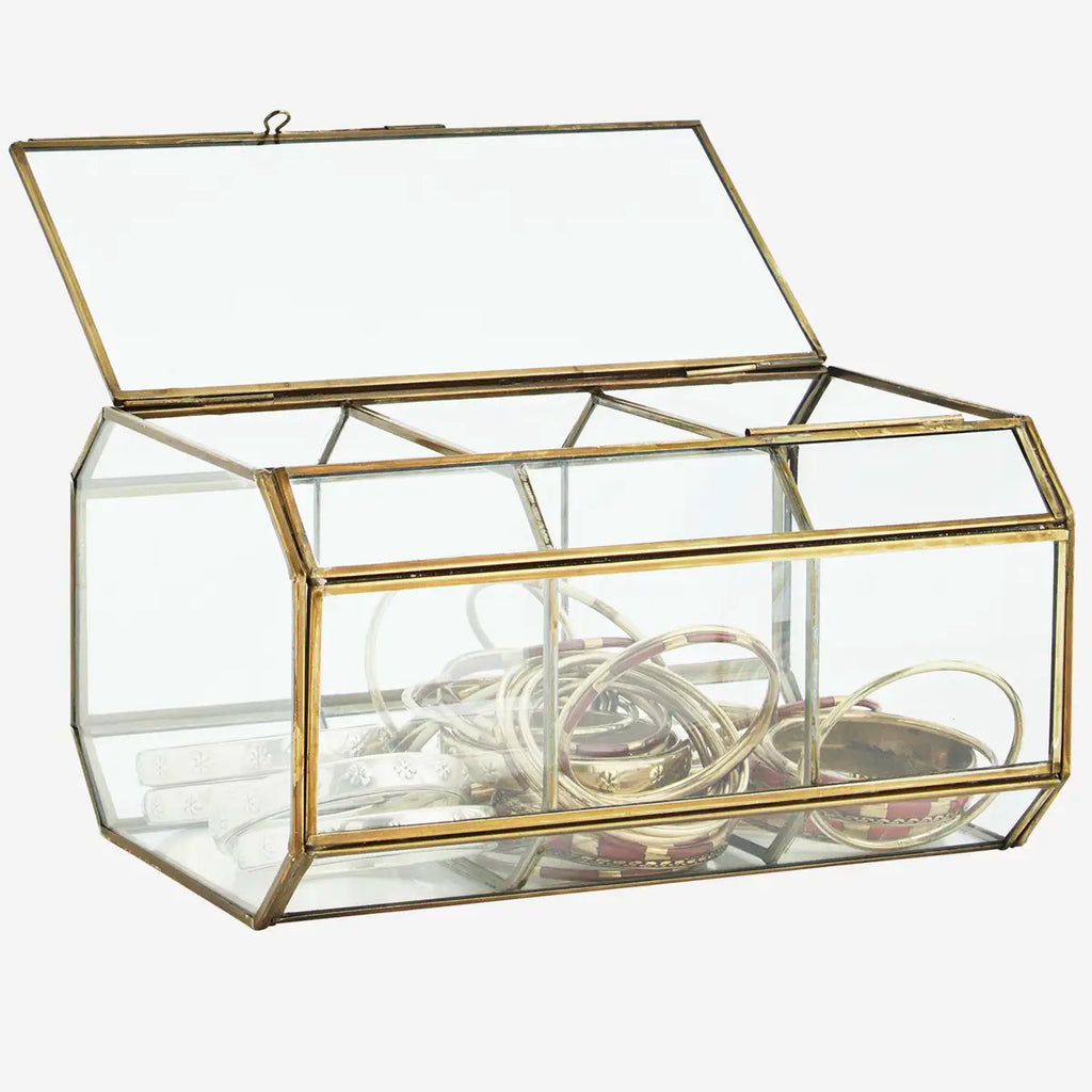 Store and display precious trinkets and mementoes in this beautiful glass and brass box.