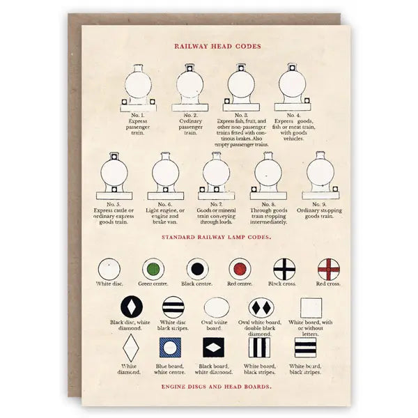 Adapted from The Wonder Book of Railways for Boys and Girls, (c.1922). Outlining the system of lamps and discs used on the front of locomotives to identify trains, the book (published before the 1923 railway company amalgamations) explains that ‘every railway has its own system of head codes but there are nine which are used by nearly all with the same meaning’.