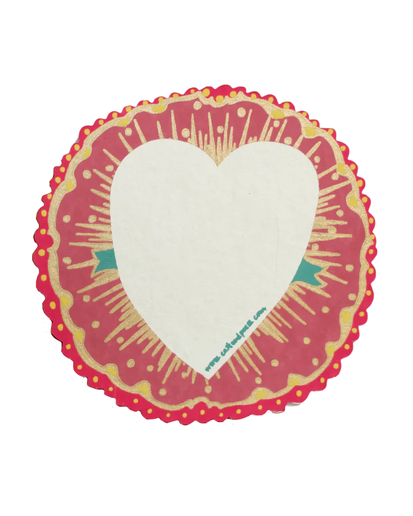 This double sided, die cut heart is embellished with metallic gold flourishes. There is a panel on the reverse for your message, and a matching envelope.
