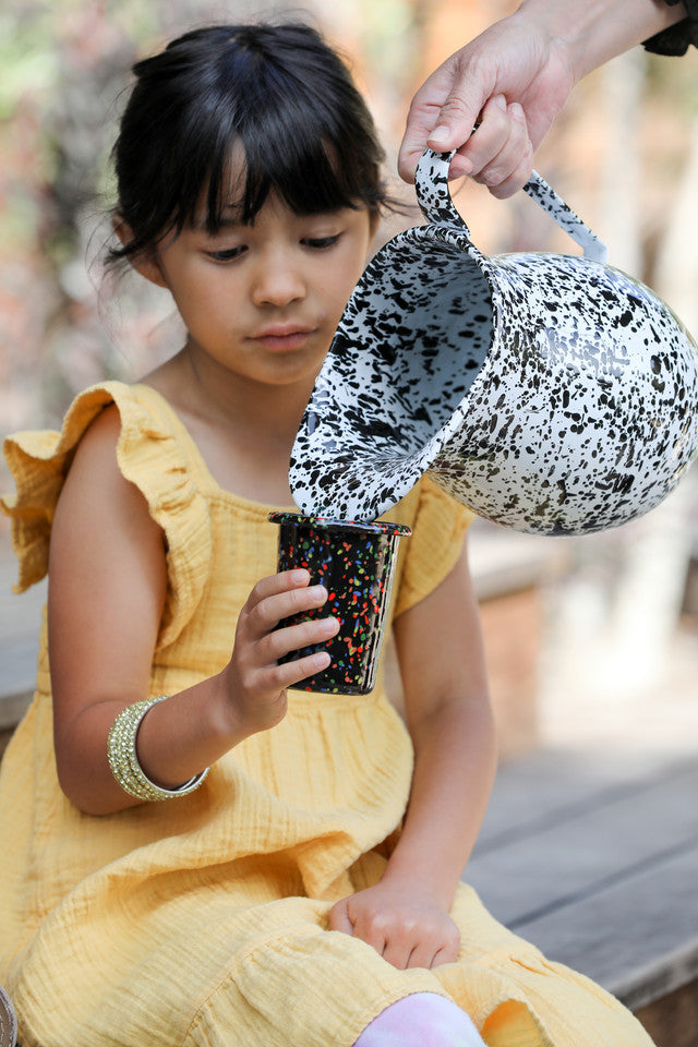 Our classic Splatter Large Pitcher is an essential element to your enamelware collection. The stunning Splatter pattern brings joy to everyday moments like sharing lemonade with friends or as a vase for fresh flowers.