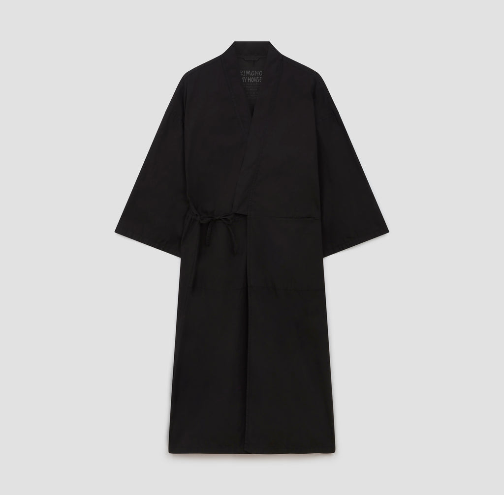 The kimono was designed to be worn in the home to relax and lounge about. It can be fully wrapped and tied in place for modesty or can be tied at the front for a looser feel. You can leave the waist flat or there is a cord channel on the back which can be pulled to create a feminine waist. The flexible cord ties have bene designed with both men and women in mind. It has the two deep front pockets and the internal phone pocket for anything you may need to carry around with you.