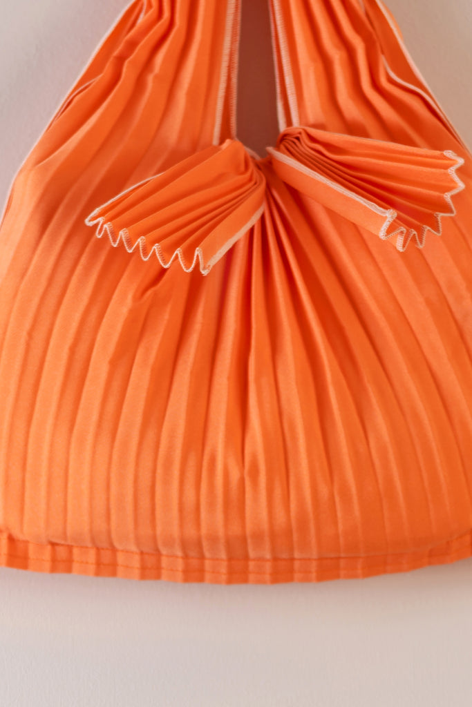 Vertical Pleated Mini Tote Bag - Honey Orange & Beige