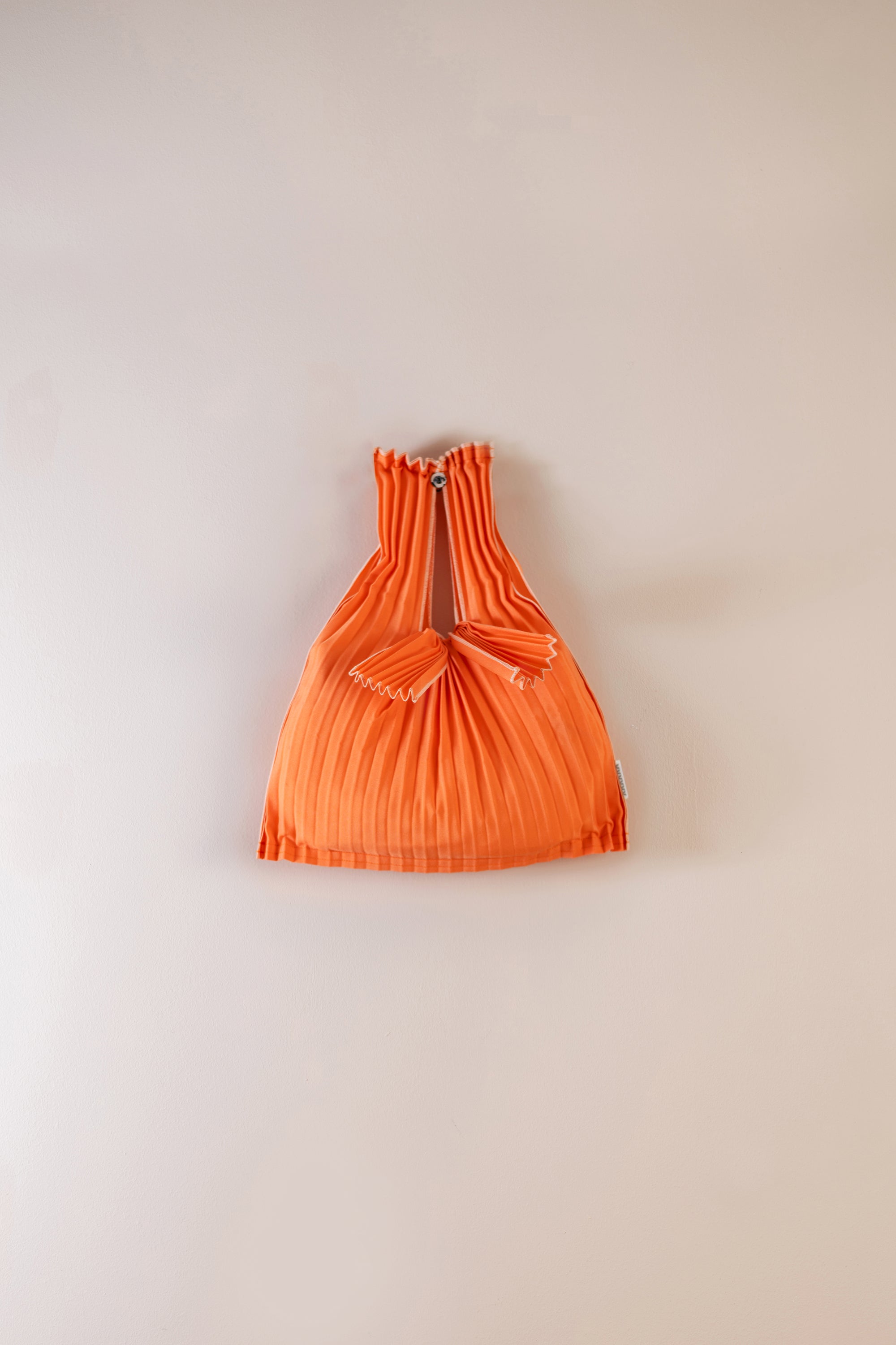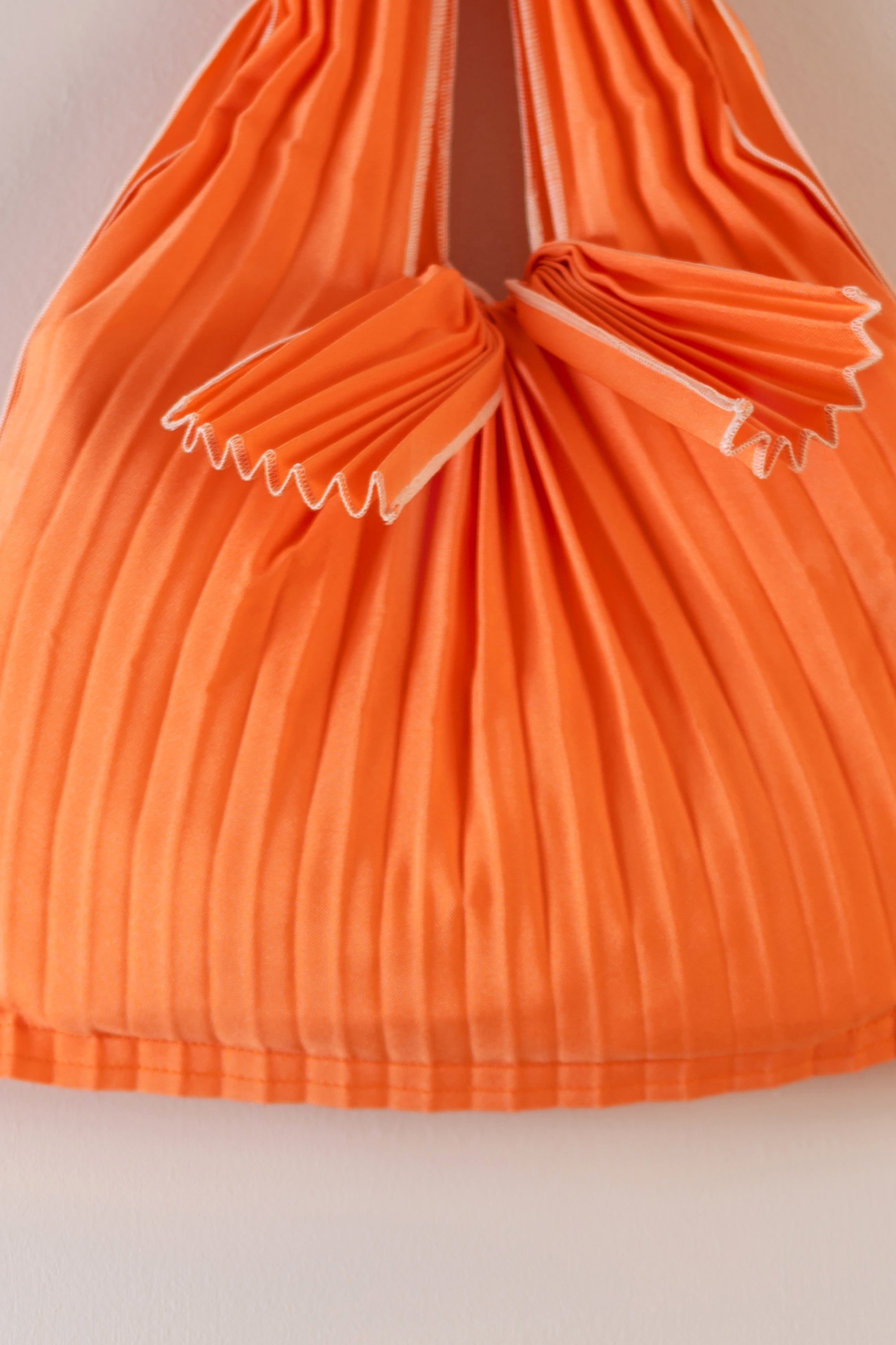 Vertical Pleated Mini Tote Bag - Honey Orange & Beige