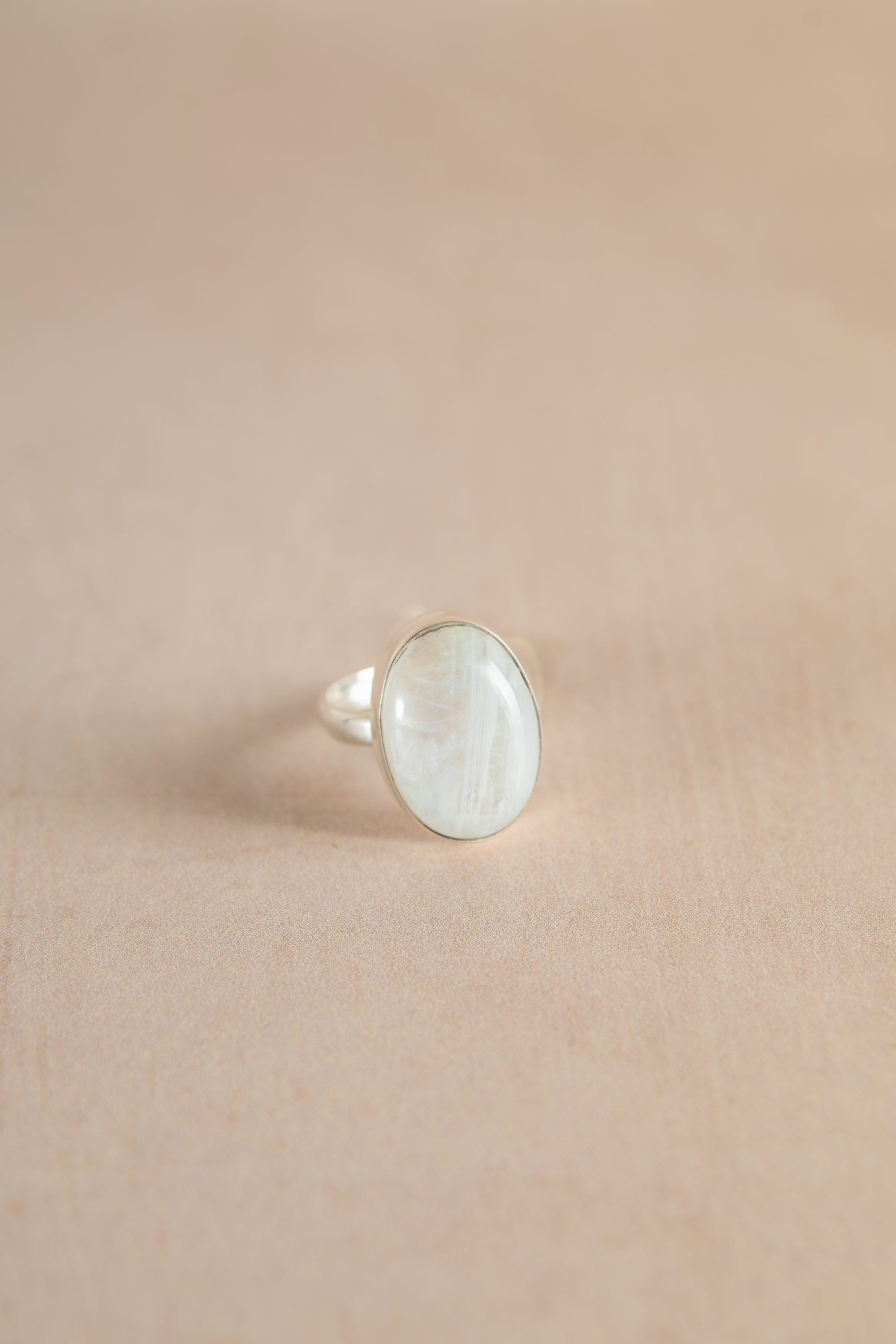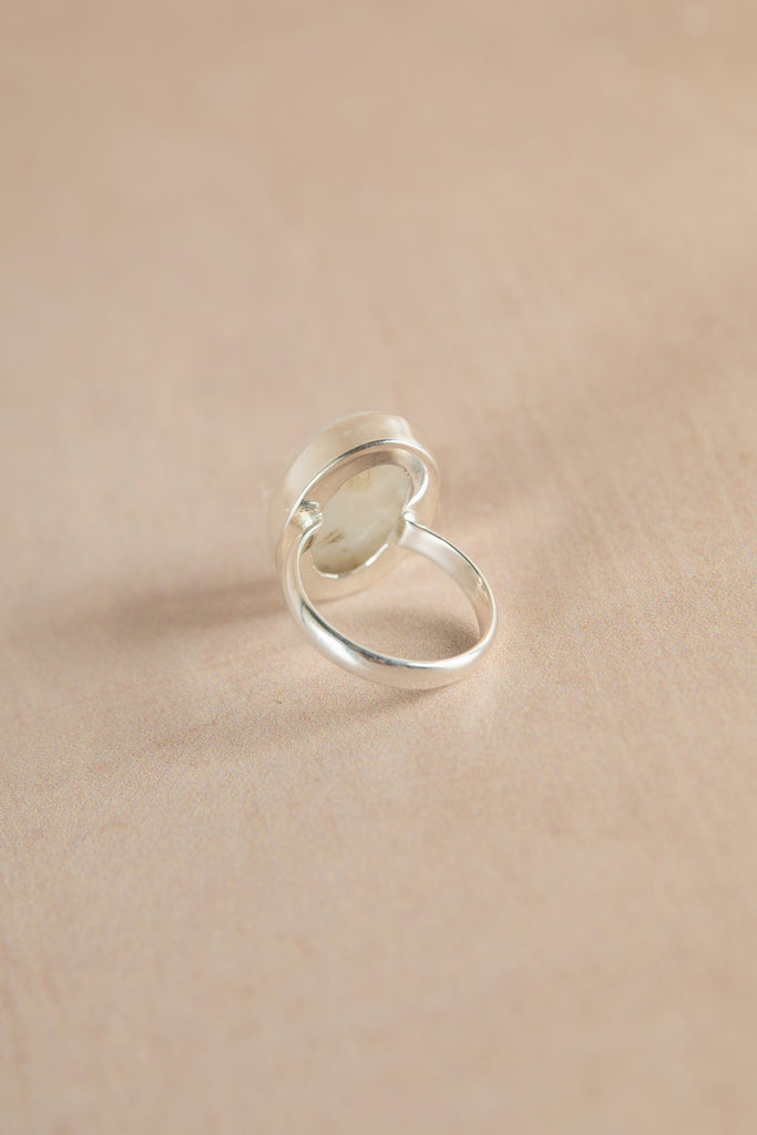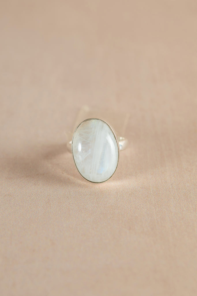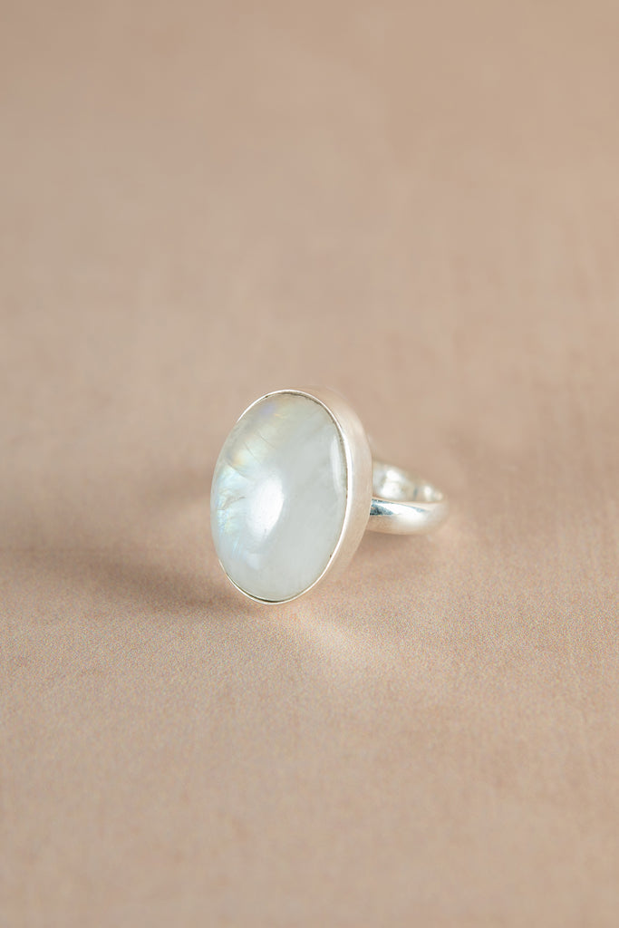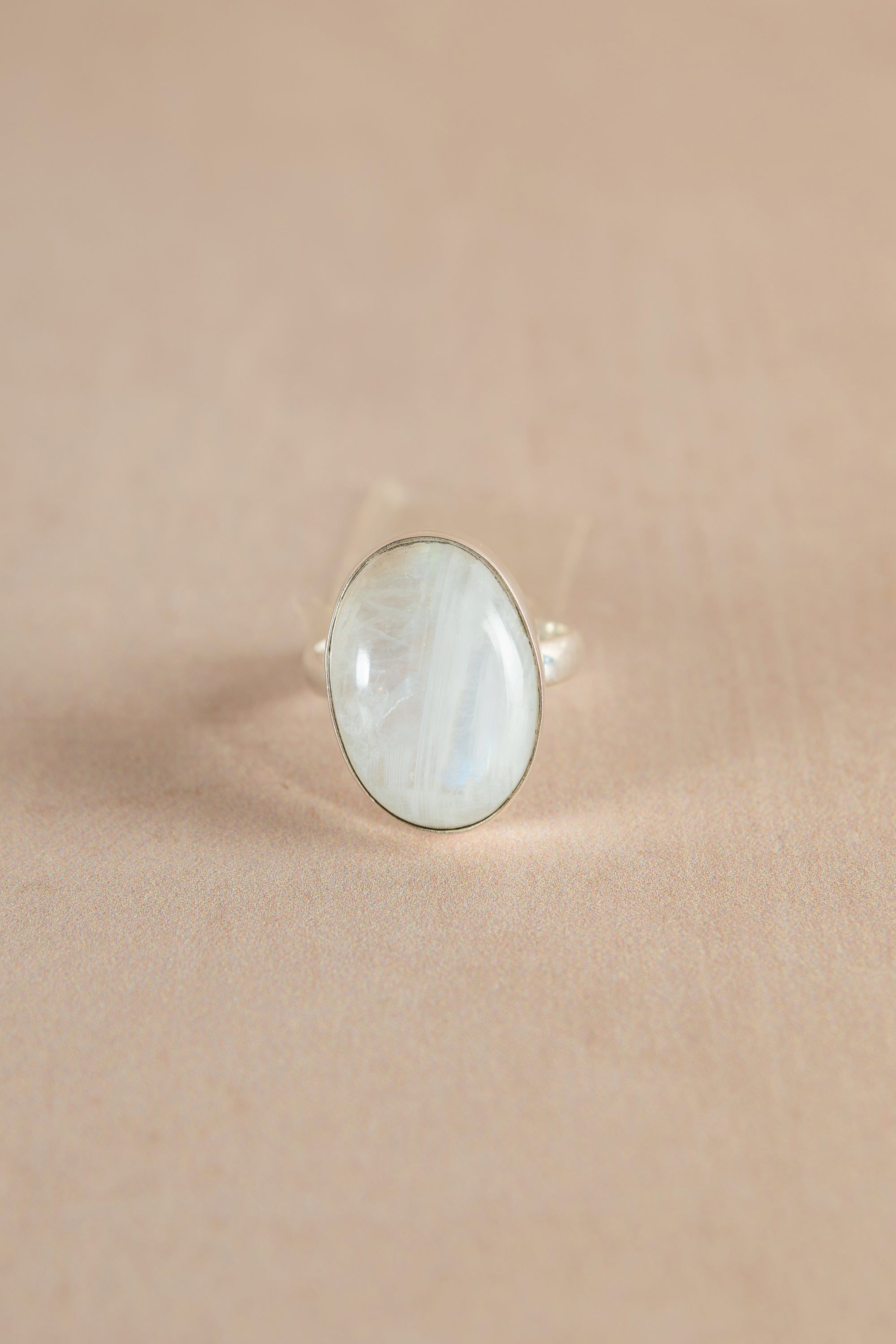 A beautiful vintage Rainbow Moonstone ring, made with sterling silver.
